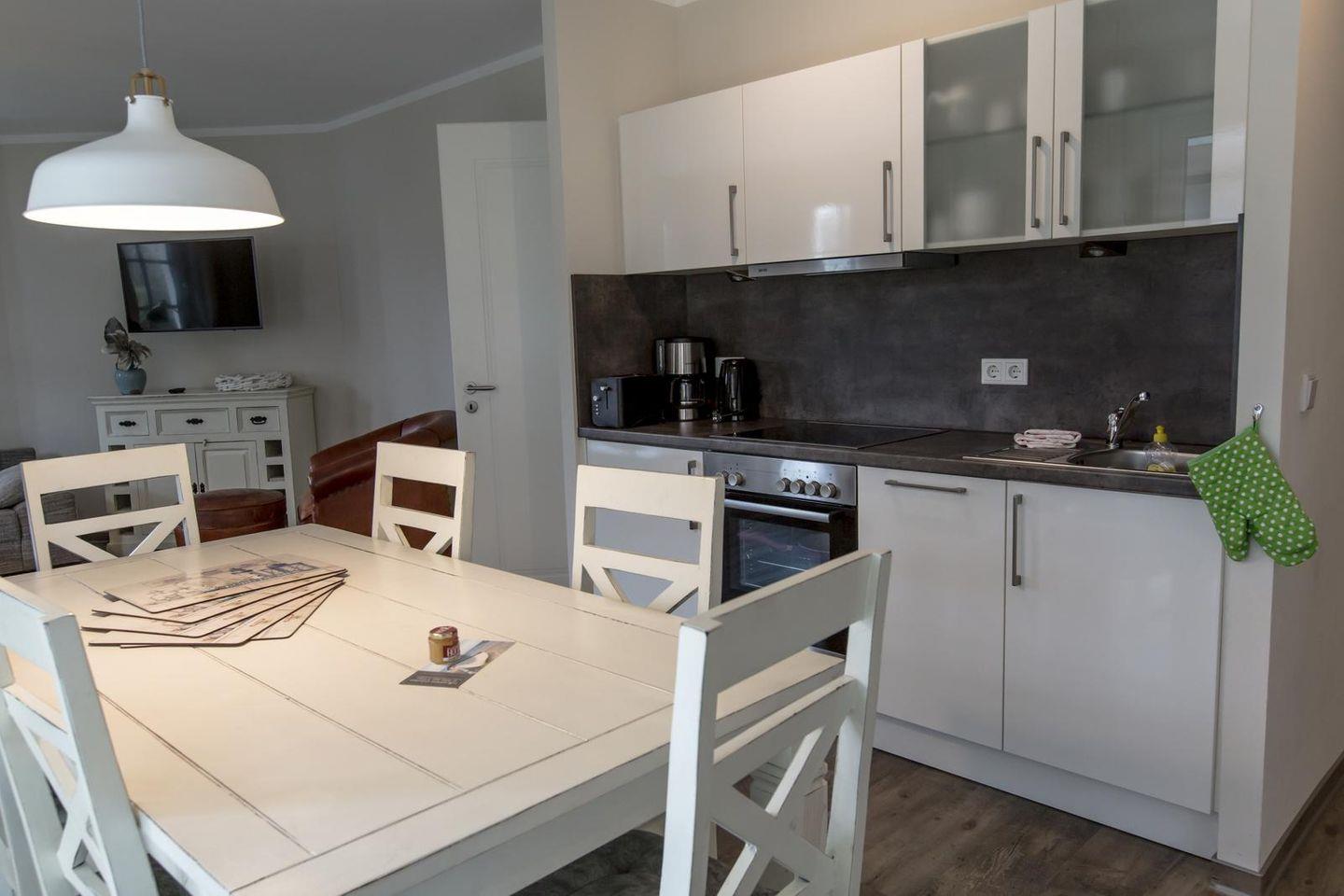 Die 18 Appartements sind ganzjährig buchbar. Das gesamte Ferienobjekt wird komplett über eine Erdwärme-Fußbodenheizung beheizt. Auf Teppichböden wurde generell verzichtet. 18 Stellplätze sowie Abstellmöglichkeiten für, z.B. Fahrräder befinden sich geschützt vor Wind und Wetter in der Tiefgarage des 2014 gebauten Appartementhauses.