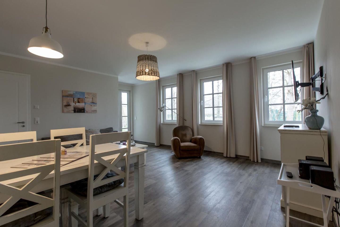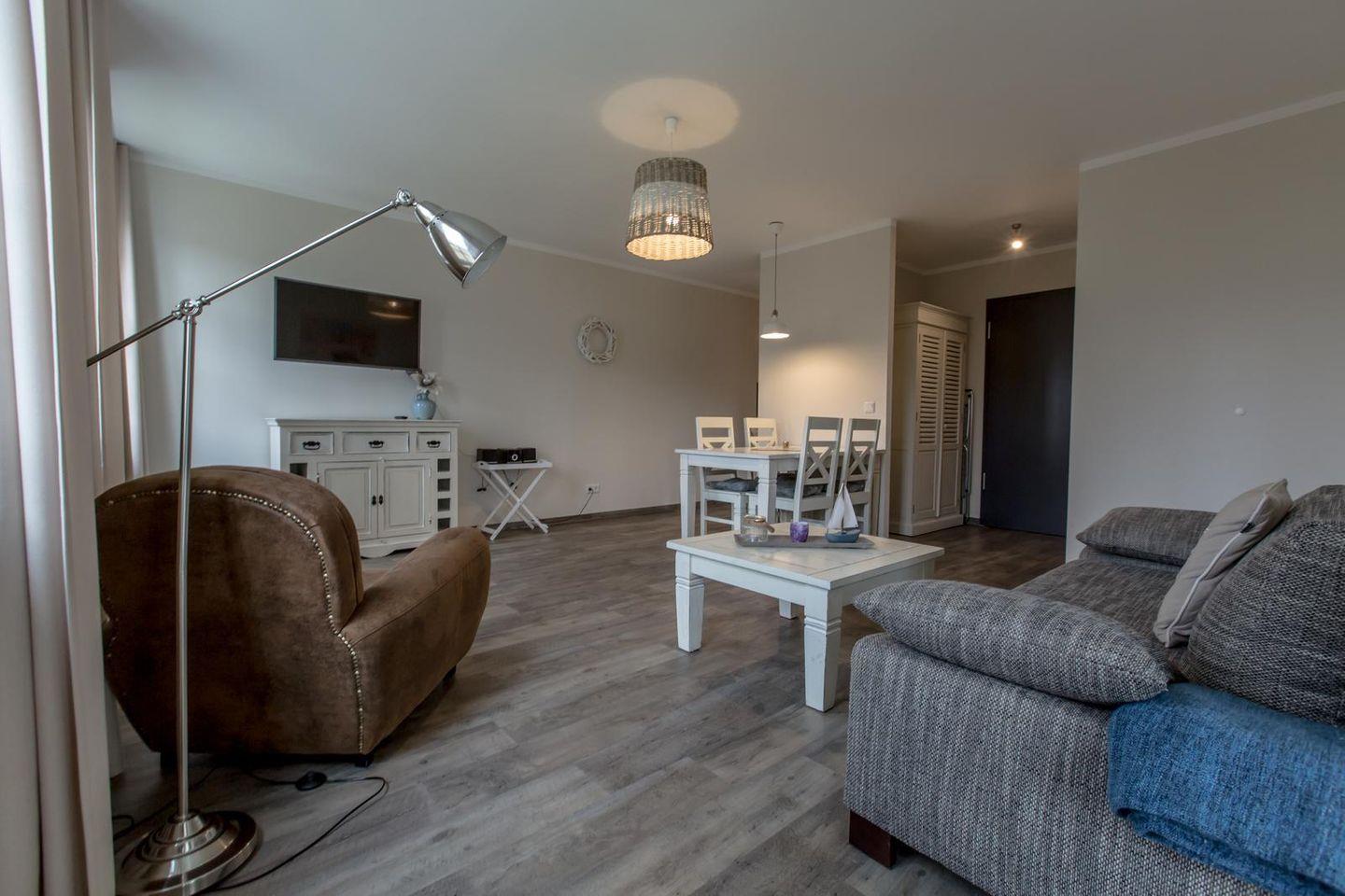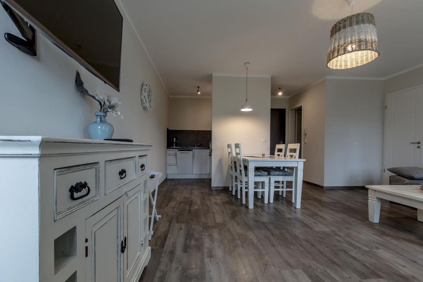Die 18 Appartements sind ganzjährig buchbar. Das gesamte Ferienobjekt wird komplett über eine Erdwärme-Fußbodenheizung beheizt. Auf Teppichböden wurde generell verzichtet. 18 Stellplätze sowie Abstellmöglichkeiten für, z.B. Fahrräder befinden sich geschützt vor Wind und Wetter in der Tiefgarage des 2014 gebauten Appartementhauses.