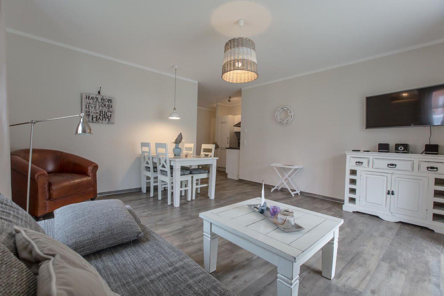 Die 18 Appartements sind ganzjährig buchbar. Das gesamte Ferienobjekt wird komplett über eine Erdwärme-Fußbodenheizung beheizt. Auf Teppichböden wurde generell verzichtet. 18 Stellplätze sowie Abstellmöglichkeiten für, z.B. Fahrräder befinden sich geschützt vor Wind und Wetter in der Tiefgarage des 2014 gebauten Appartementhauses.