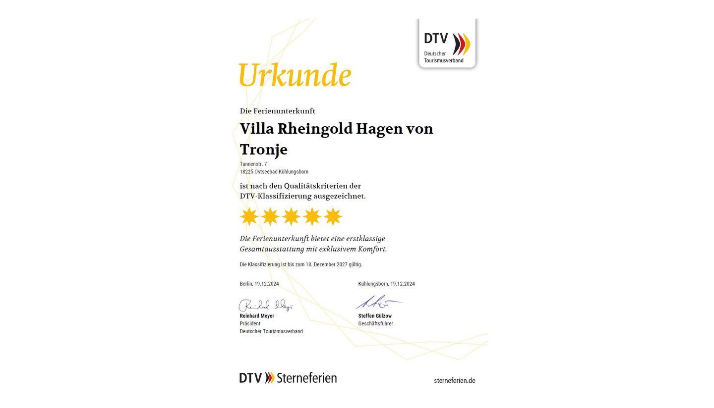 "Hagen von Tronje" ist eine exklusive 3-Zimmer-Ferienwohnung von etwa 68 m² im ersten Stock der Villa Rheingold in Kühlungsborn West. Sie hat ein Bad mit integrierter Sauna, zwei Schlafzimmer, hochwertige Unterhaltungselektronik und eine voll ausgestattete Küche. Genieß die frische Luft der Ostsee und die Sonnenaufgänge auf dem Balkon nach Osten, der vom Wohnzimmer und einem Schlafzimmer aus erreichbar ist.