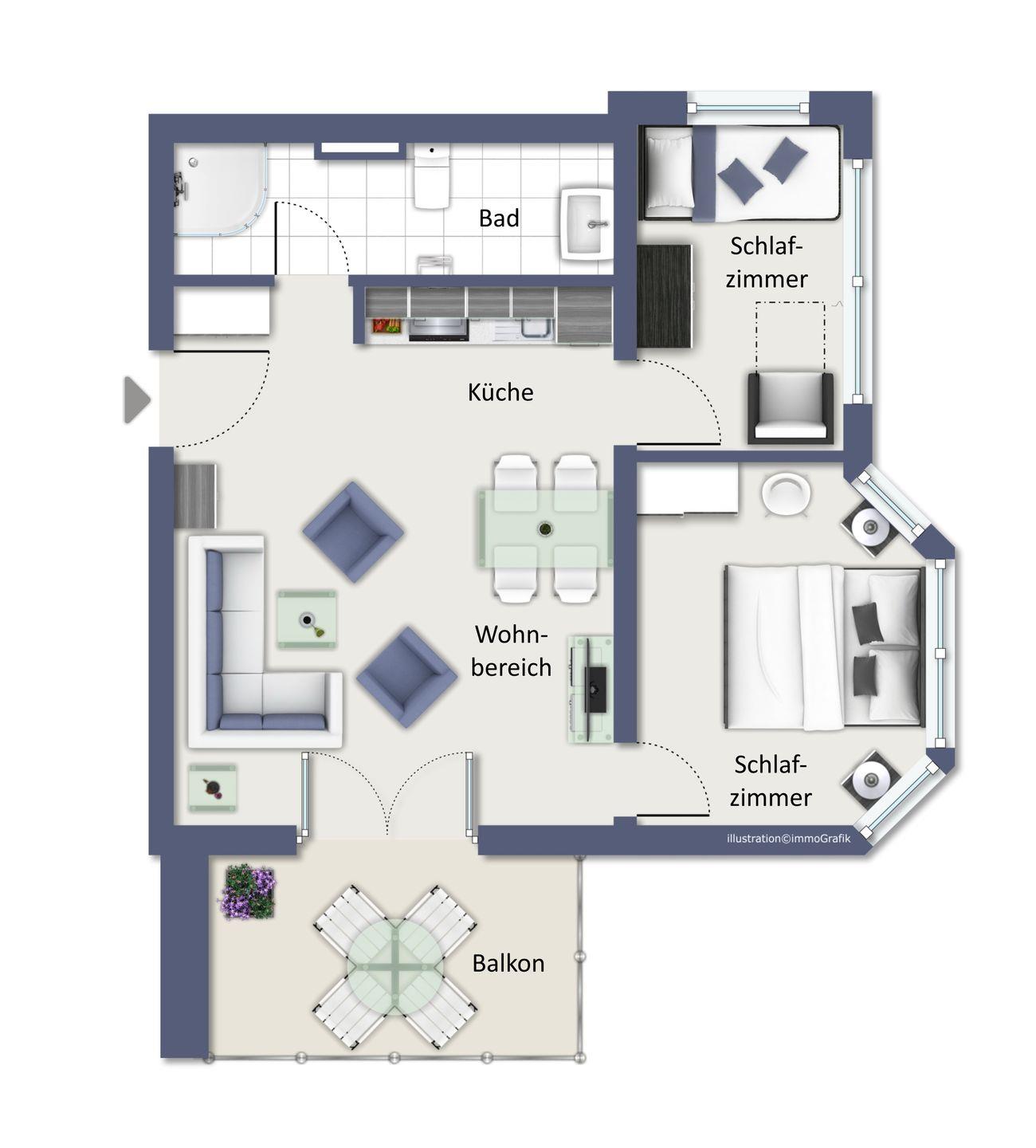 Wohnfläche 55 m²