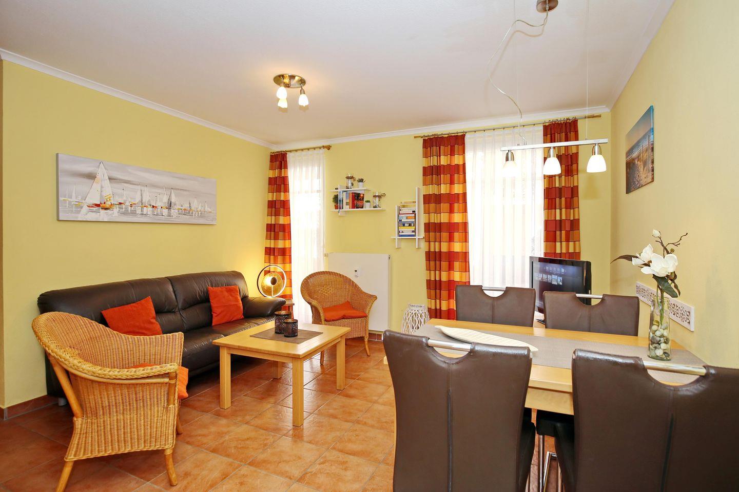 Erlebe in der 3-Zimmer-Wohnung mit bis zu 4 Personen entspannte Urlaubstage in Strandnähe. Die 50 m² große Ferienwohnung befindet sich im Erdgeschoss und ist für dich in einen Wohn- und Essbereich, eine Küchenzeile, zwei Schlafzimmer und ein Duschbad aufgeteilt. Auf der Terrasse kannst du deinen Urlaubstag im Strandkorb beginnen und ausklingen lassen. Die Strandpromenade erreichst du fußläufig nach etwa 50 Metern. Genieße hier entspannte Spaziergänge mit Blick auf die Ostsee oder verweile am feinsandigen Strand.