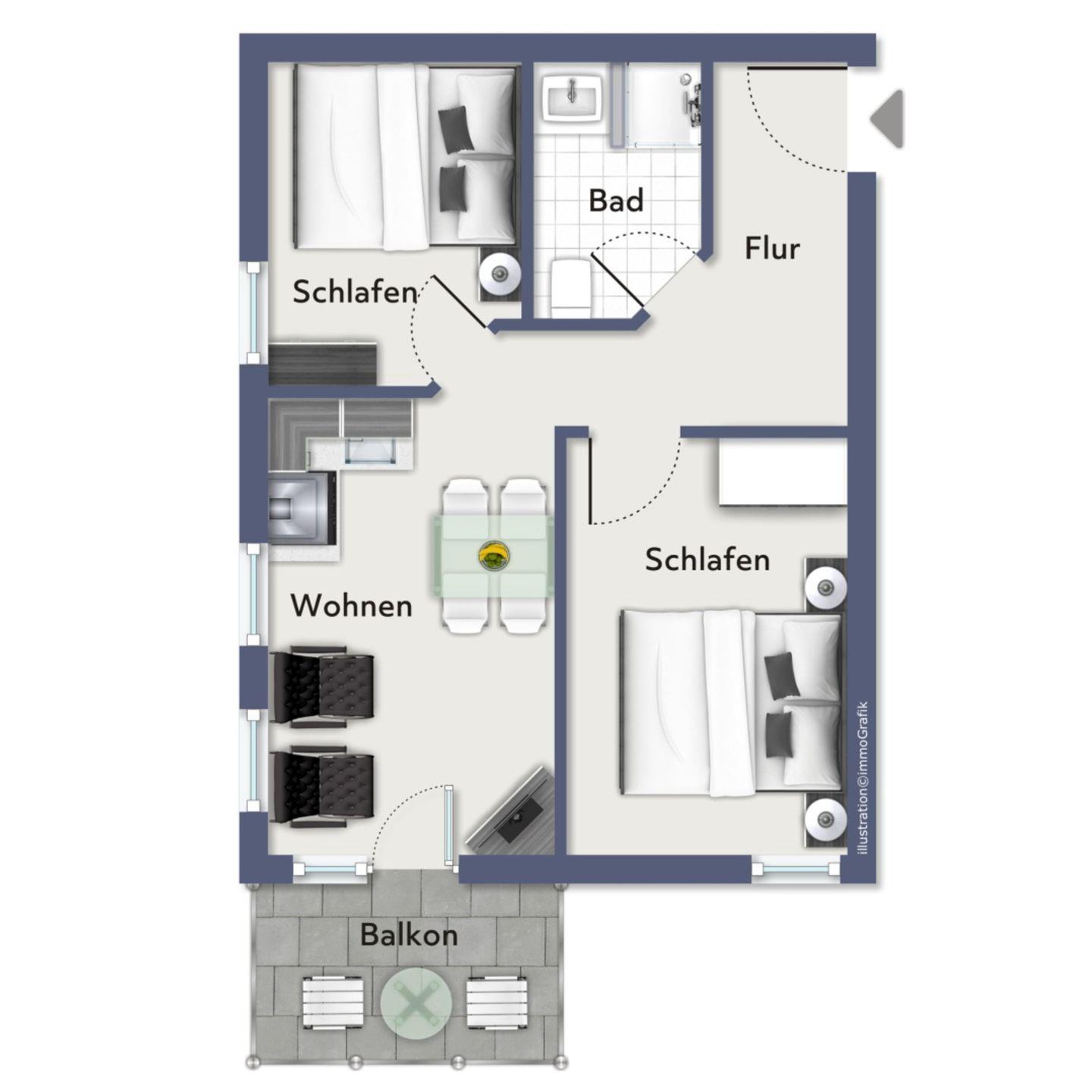 Die Ferienwohnung Nr. 11 in Haus 2 des "Dünenschloss" in Kühlungsborn ist eine 50 m² große 3-Zimmer-Wohnung für bis zu 4 Personen. Zur Wohnung gehört ein Balkon. Das Haus verfügt über eine Sauna, ein Schwimmbad und einen Fitnessraum.