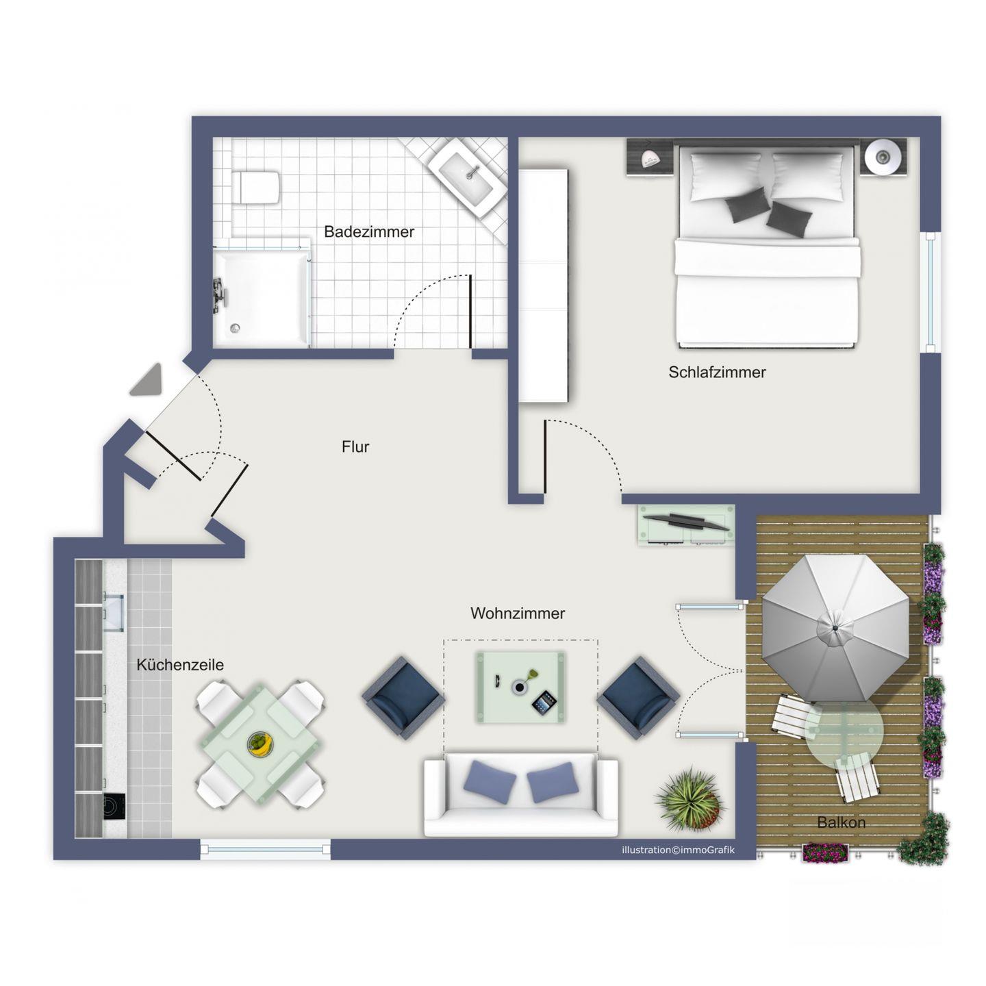 Du wohnst in einer liebevoll eingerichteten, ca. 38 m² großen, hellen 2-Raum-Wohnung in der 1. Etage. Auf dem ruhigen, nach Süden ausgerichteten Balkon kannst du den Tag mit einem Glas Wein und Blick in den Stadtwald ausklingen lassen. Die Entfernung zum Strand beträgt ca. 50 m.
