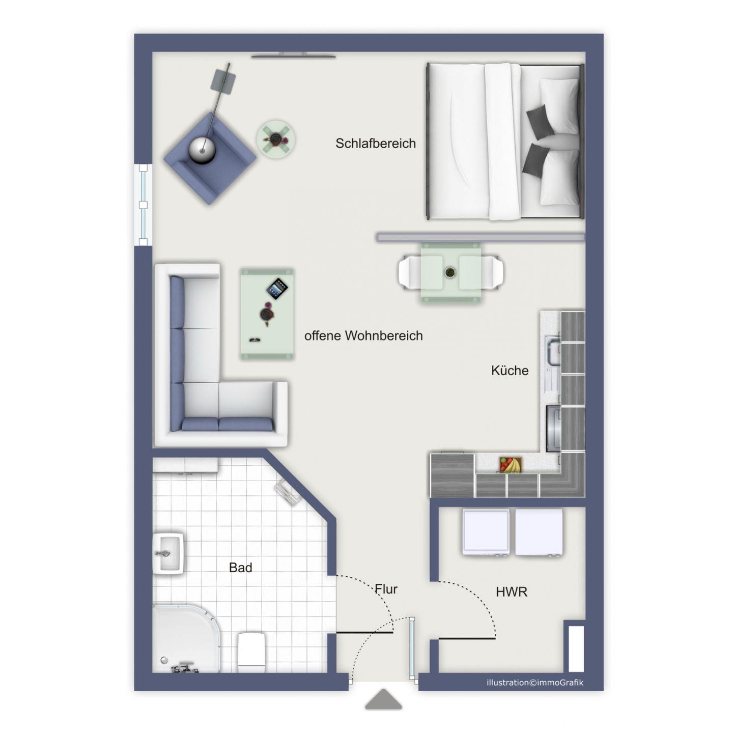 Auf den 35 m² der kleinen aber feinen Dachgeschoss-Wohnung erwarten dich ein Wohn- und Schlafbereich mit integrierter Küchenzeile und Esstisch, ein Duschbad und ein Abstellraum. Die Wohnung ist bequem mit einem Lift zu erreichen. Zum feinen Sandstrand und zur Seebrücke sind es etwa 300 Meter.