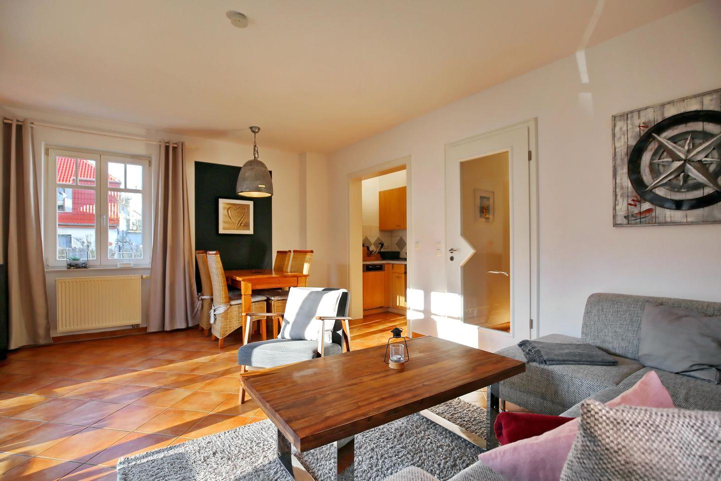 Die Villa Seepferdchen Wohnung 01 bietet moderne Ausstattung und eine ruhige Süd-Terrasse nur 50 m vom Strand in Kühlungsborn.