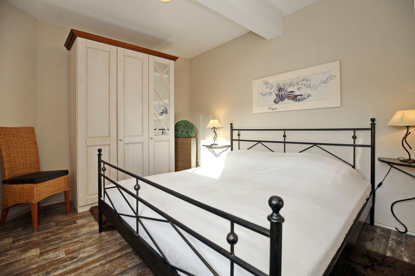 In dem gemütlichen Schlafzimmer wartet auf dich ein Doppelbett (2 x 90 x 200 cm). Deine Urlaubsgarderobe findet im Kleiderschrank genügend Platz. Der Abstellraum in der Wohnung bietet dir zusätzlichen Stauraum. Das geflieste Tageslichtbad verfügt über eine Dusche, ein WC und ein Waschbecken. Die Ferienwohnung ist mit PVC-Boden im Schlafzimmer und mit Fliesen im Wohnraum und Badezimmer ausgestattet.