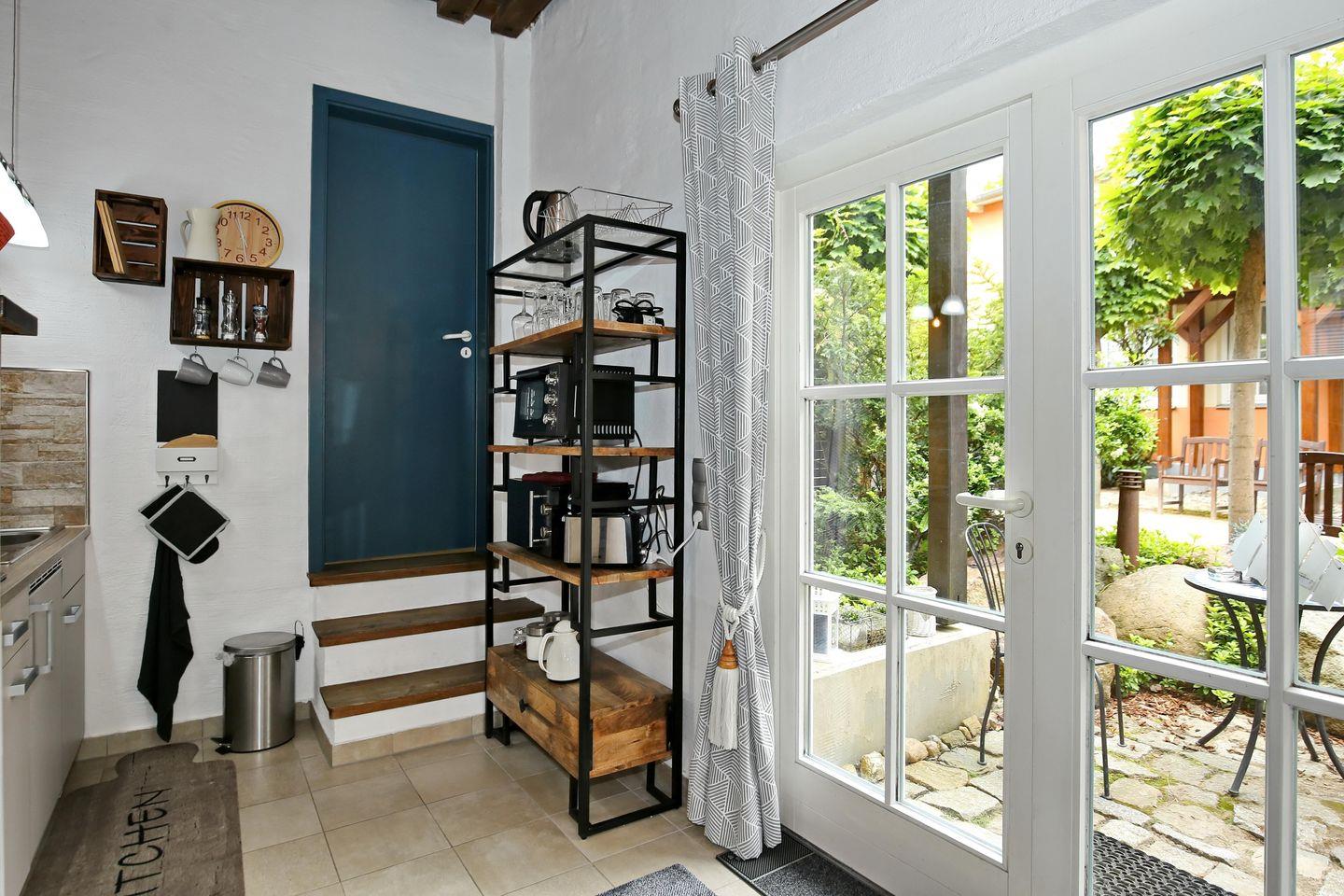 Die 2-Zimmer-Ferienwohnung 14 „Auf den Höfen“ mit 41 m² für bis zu 3 Personen befindet sich im Erdgeschoss und verfügt über eine kleine Terrasse.