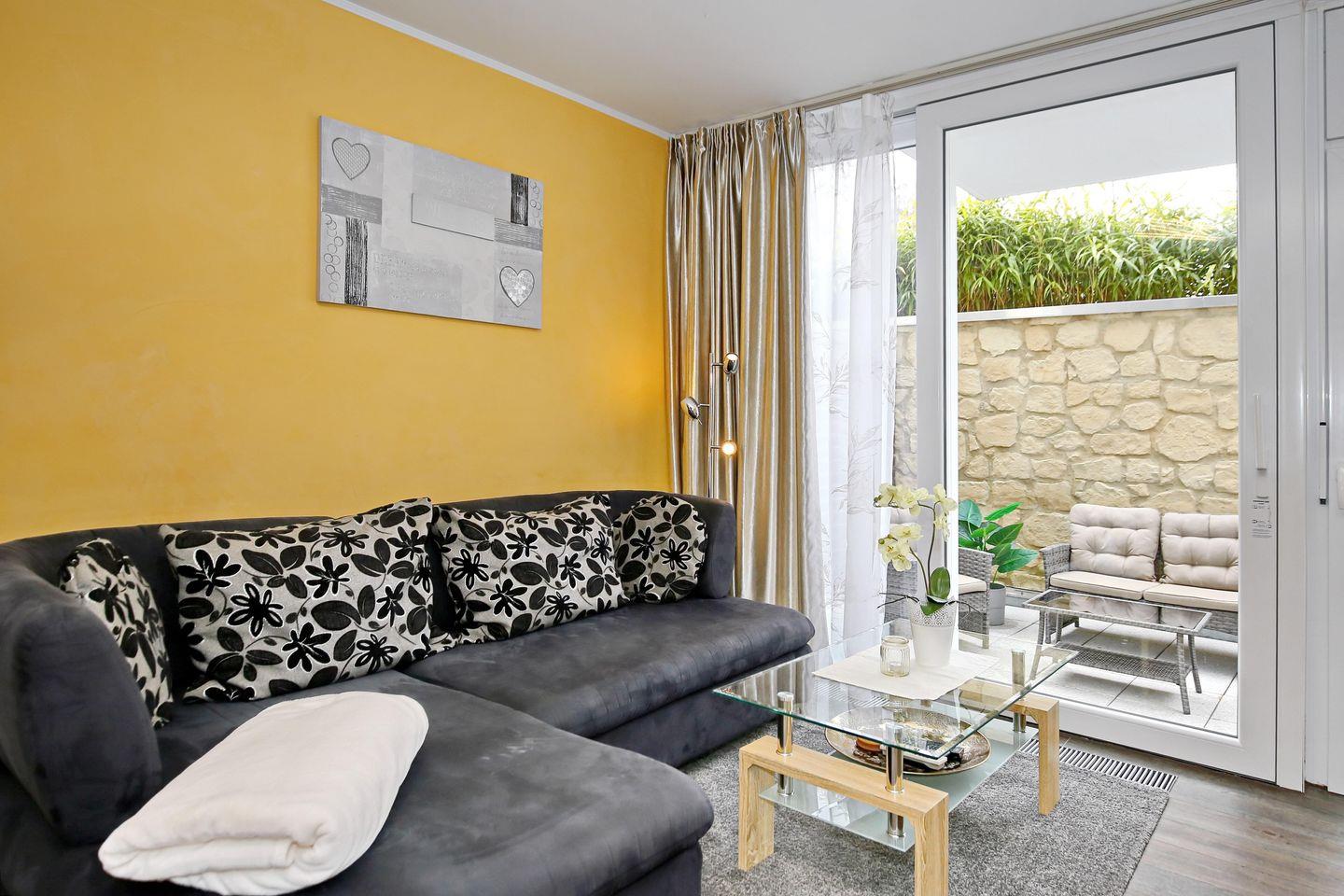 Die 58 m² große 1-Zimmer-Ferienwohnung 1 in der Villa Patricia befindet sich im Souterrain und verfügt über eine Terrasse mit Südausrichtung. Bis zu 3 Personen können hier einen schönen Urlaub verbringen.