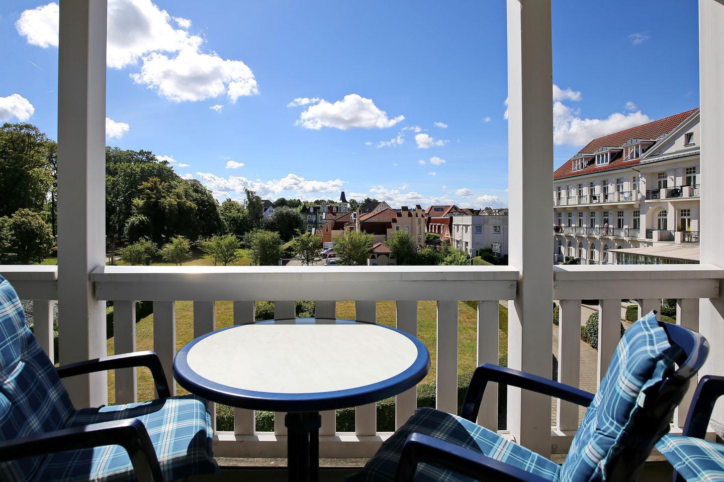 Moderne 2-Zimmer-Ferienwohnung mit Balkon und Meeresblick in Kühlungsborn, nur 50 m vom Strand entfernt.