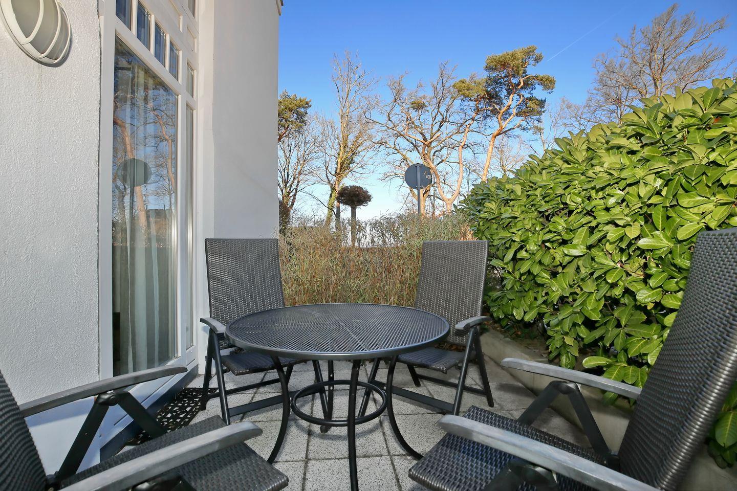 Moderne 2-Zimmer-Ferienwohnung mit seitlichem Ostseeblick und Terrasse in Kühlungsborn, 50 m vom Strand entfernt.