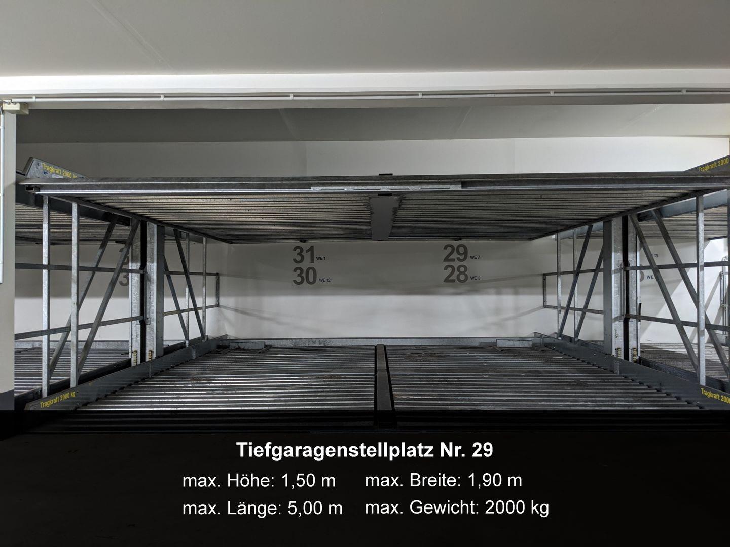 Es handelt sich um eine Nichtraucherwohnung. Zur Wohnung gehört ein KFZ-Stellplatz Nr. 29 in der Tiefgarage (max. Fahrzeughöhe 1,50 m und max. 2000 kg). Auf Anfrage kann ein Außenstellplatz hinter dem Objekt reserviert werden. Für Gäste, deren Fahrzeug zu groß für die Tiefgarage ist, werden 50 Prozent der Gebühren für die Nutzung des öffentlichen Parkplatzes im Reutersteig, übernommen.