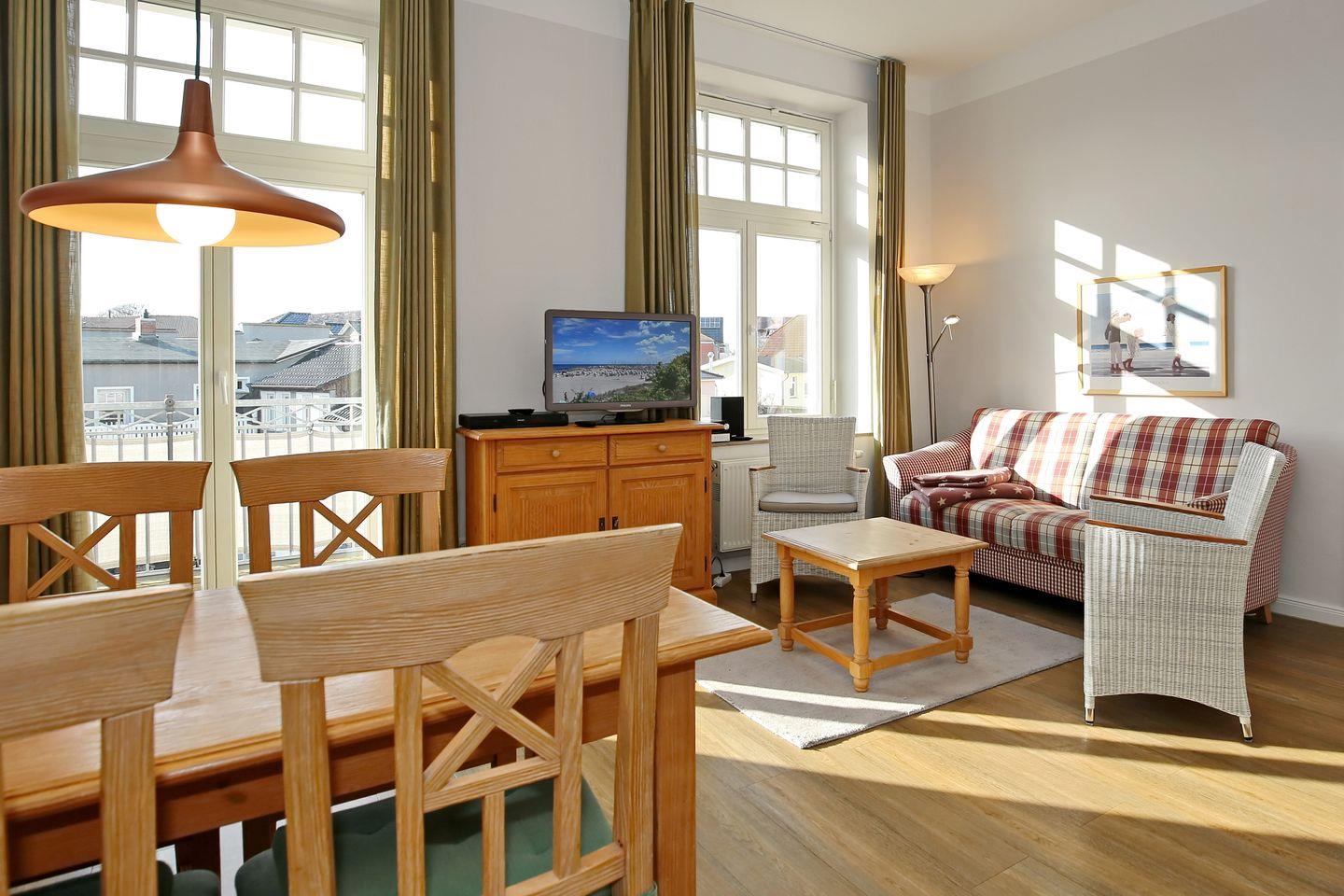 Gemütliche 3-Zimmer-Ferienwohnung mit Teilseeblick und Balkon, nur 50 Meter vom Strand in Kühlungsborn entfernt.