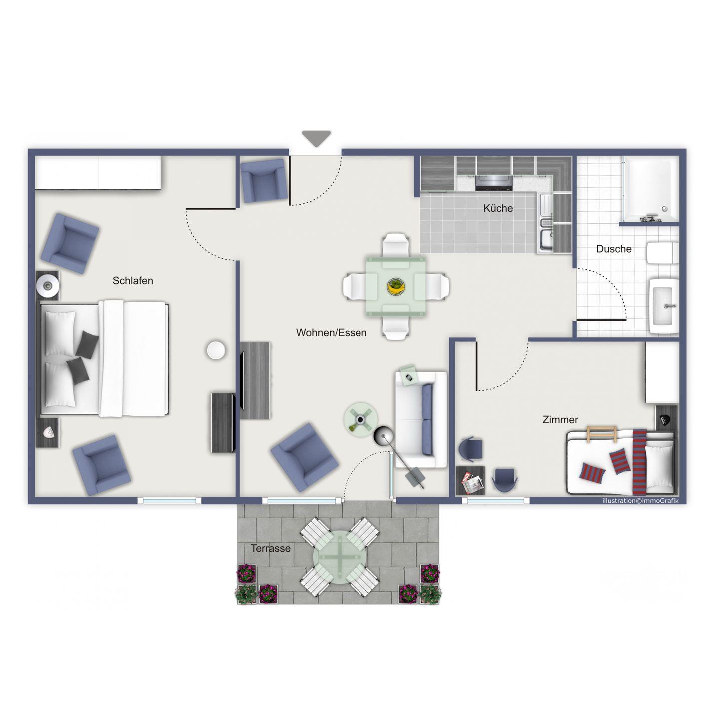 Die Ferienwohnung Nr. 07 in der Ferienanlage „Strandstraße 32“ ist eine 3-Zimmer-Ferienwohnung für bis zu 4 Personen.
