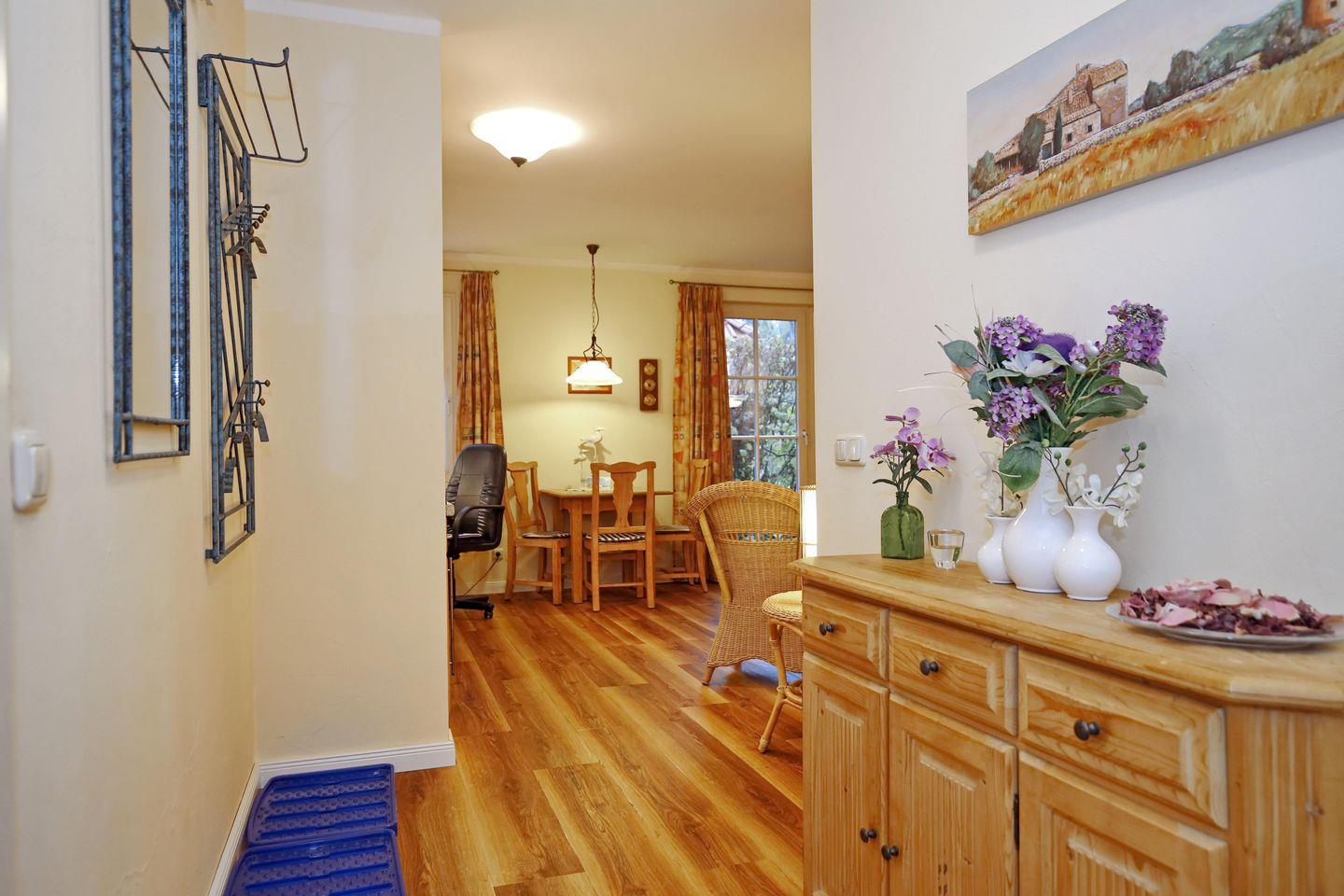 Die Wohnung Nr. 6, die über eine sehr schöne und ruhige Ost-Terrasse mit einer gepflegten Rasenfläche umgeben von Hecken verfügt, ist ein komfortables, harmonisch abgestimmtes und voll ausgestattetes 2-Zimmer-Appartement.