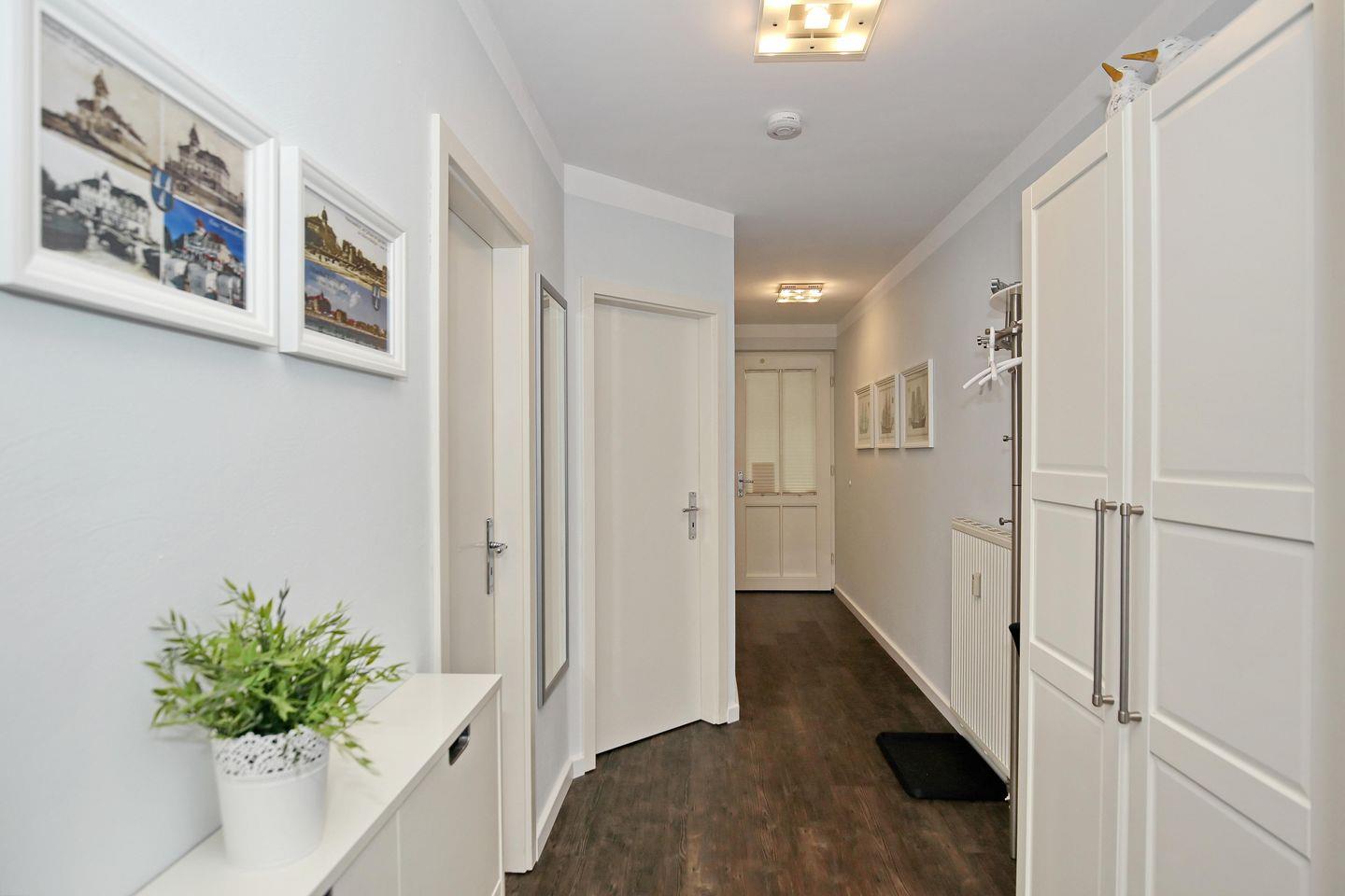 Die Ferienwohnung Nr. 104 im Haus Meeresblick ist eine 2-Zimmer-Wohnung im 1. OG mit einer Größe von etwa 54 m². Vom Balkon, haben Sie einen herrlichen Teilseeblick auf die Ostsee.