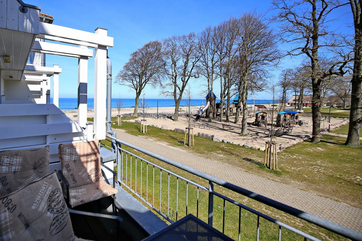 Komfortable 2-Zimmer-Ferienwohnung mit Teilseeblick und Balkon in Kühlungsborn, nur 50 Meter vom Strand entfernt.