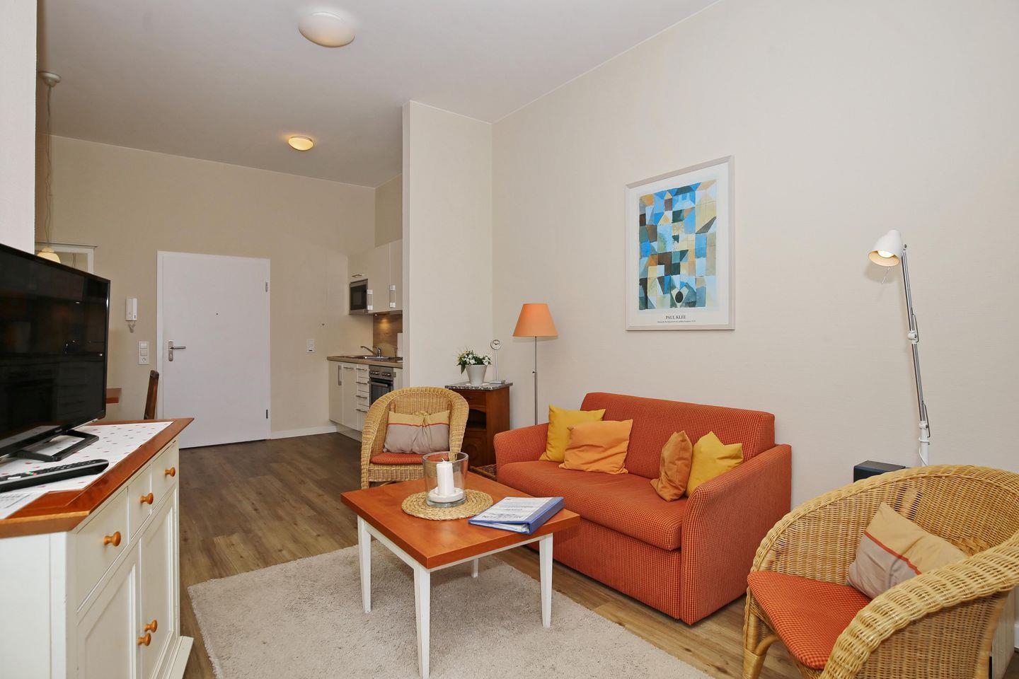 Die Ferienwohnung HaP/27 in der Ferienanlage „Haus am Park“ ist eine 2-Zimmer-Wohnung für bis zu 3 Personen.