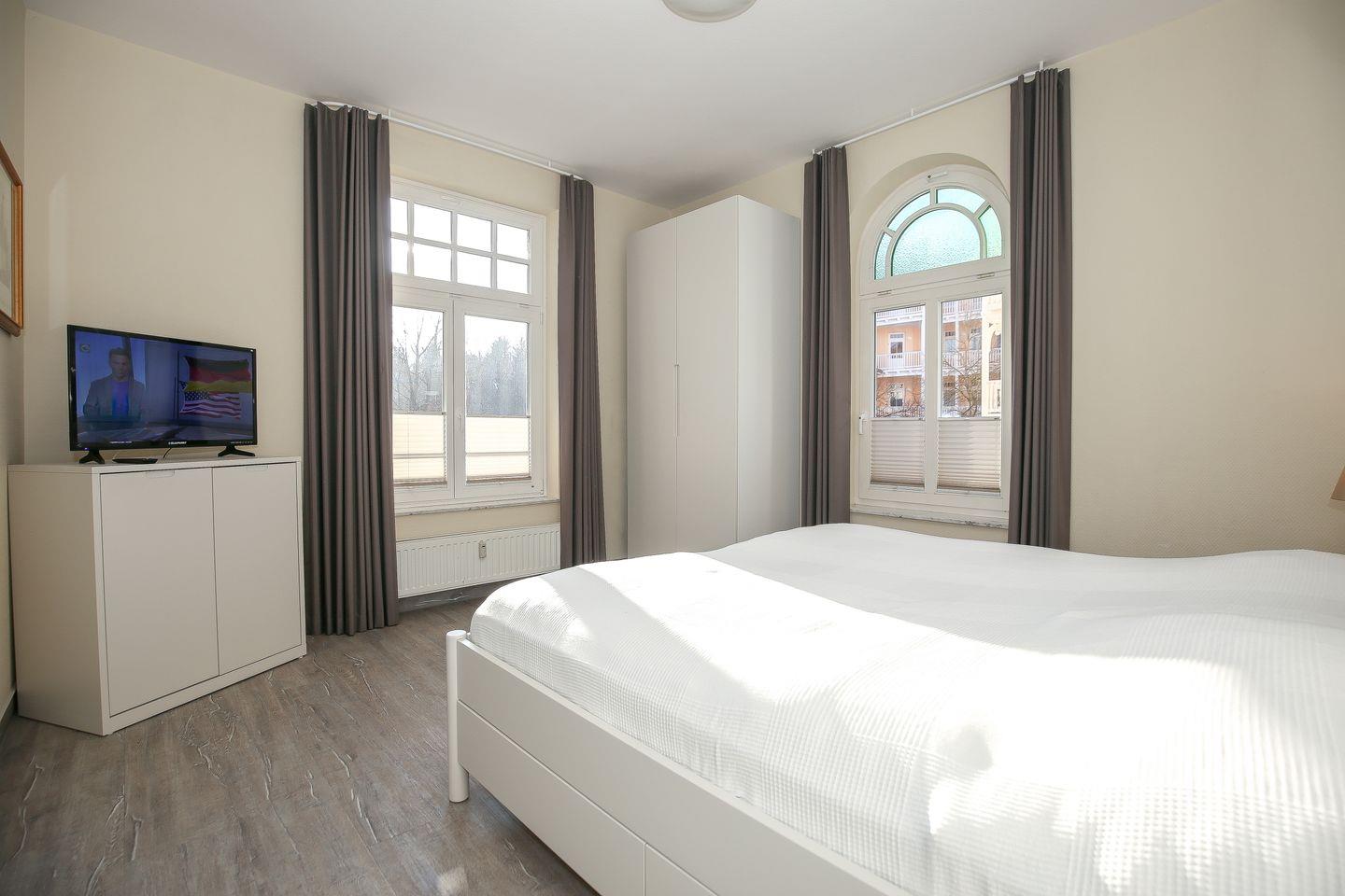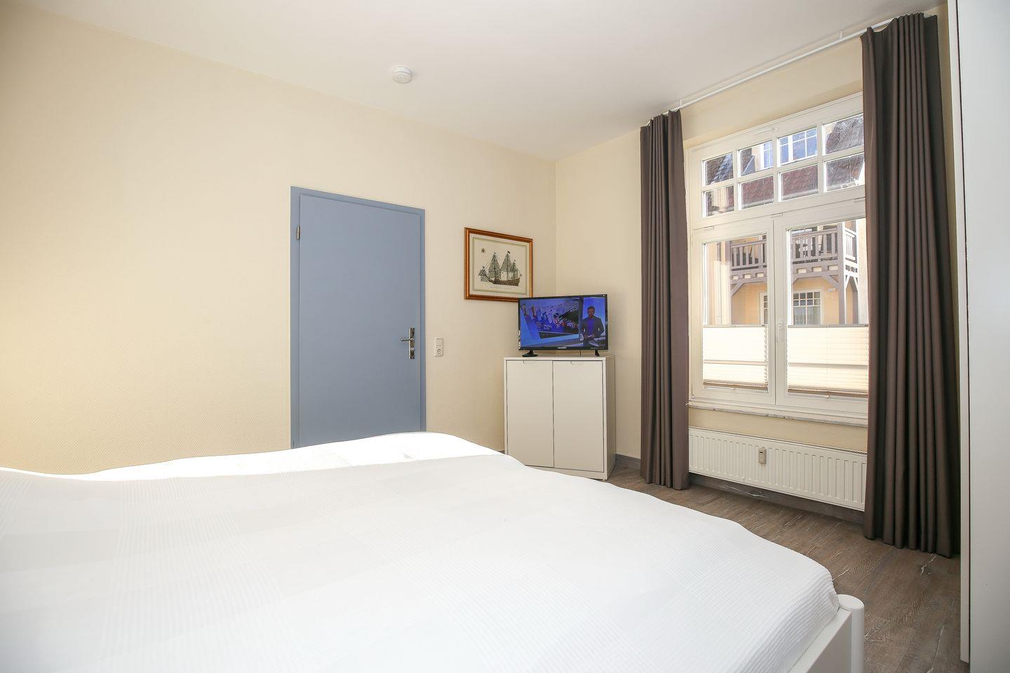 Das Schlafzimmer ist mit einem Doppelbett (2 x 90 x 200 cm) und einem Kleiderschrank sowie einem 2. Flachbild-TV ausgestattet.