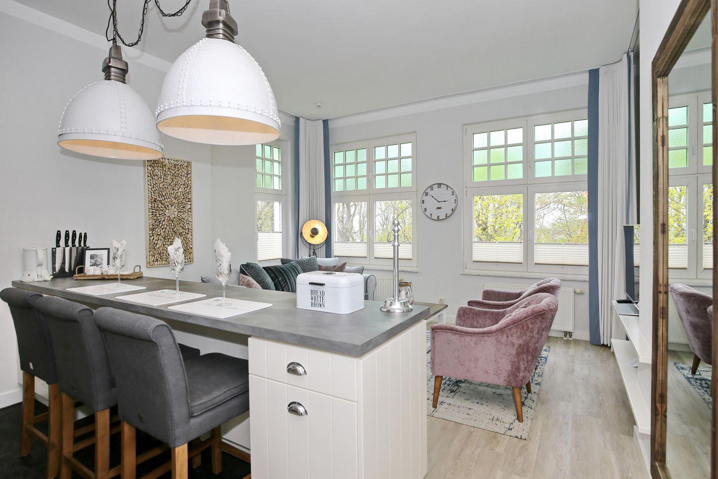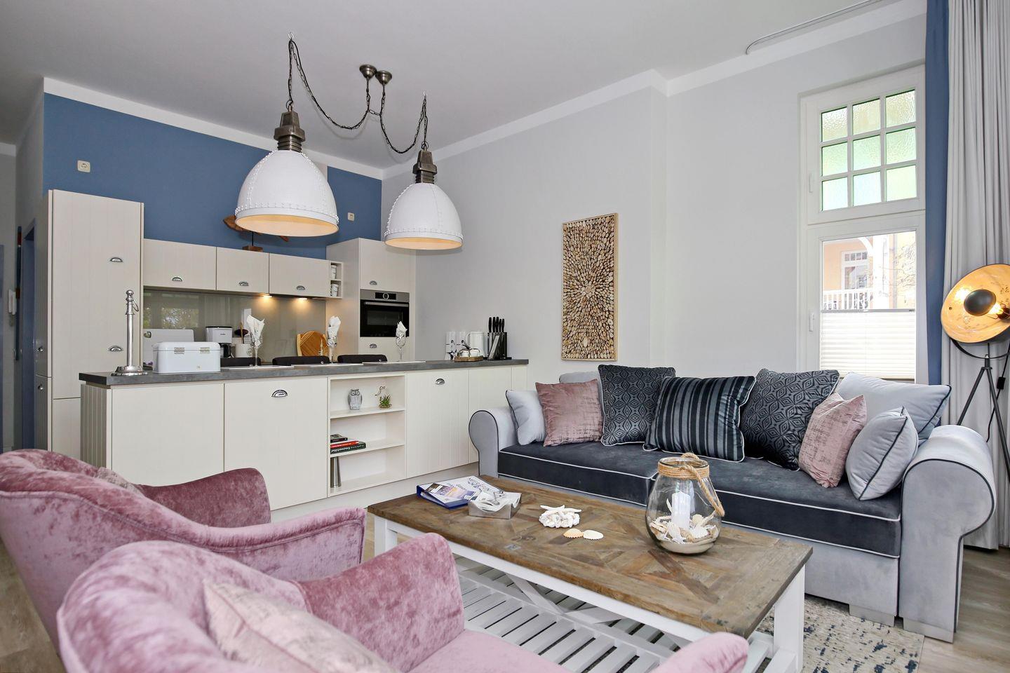 Die exklusive Ferienwohnung Nr. 07 in der Bäderstil-Villa "La Mer" ist eine 2-Zimmer-Wohnung mit offenem Küchen-Wohnbereich für 2 bis max. 4 Personen.