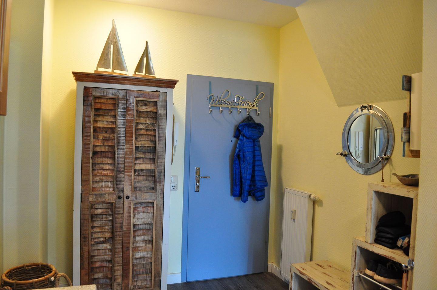 Es handelt sich um eine Nichtraucher-Wohnung, Haustiere sind nicht erlaubt. Zu der Wohnung gehört der Kfz-Stellplatz Nr. 12 (Außenstellplatz). Münzwaschmaschine und Wäschetrockner stehen den Gästen im Gemeinschaftskeller des Hauses gegen Gebühr zur Verfügung. Mitgebrachte oder ausgeliehene Fahrräder kannst du im Fahrradabstellraum sicher unterbringen. Die Entfernung zum Strand beträgt etwa 50 m.
