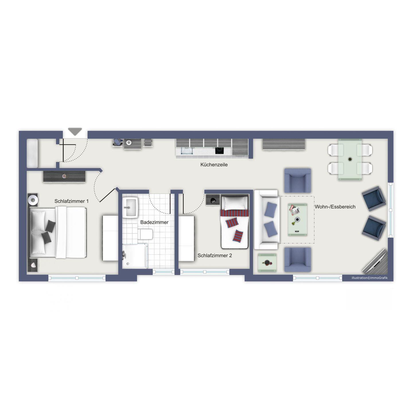 Wohnfläche 60 m²