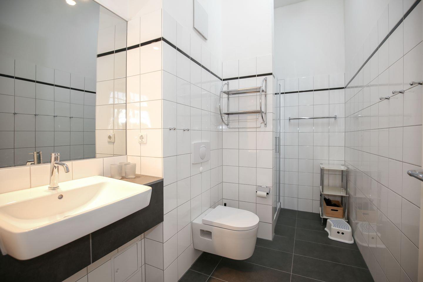 Weiterhin befindet sich in der Wohnung ein großes Duschbad/WC mit Föhn. In der gesamten Wohnung wurde ein hochwertiger Vinyl-Boden verlegt.