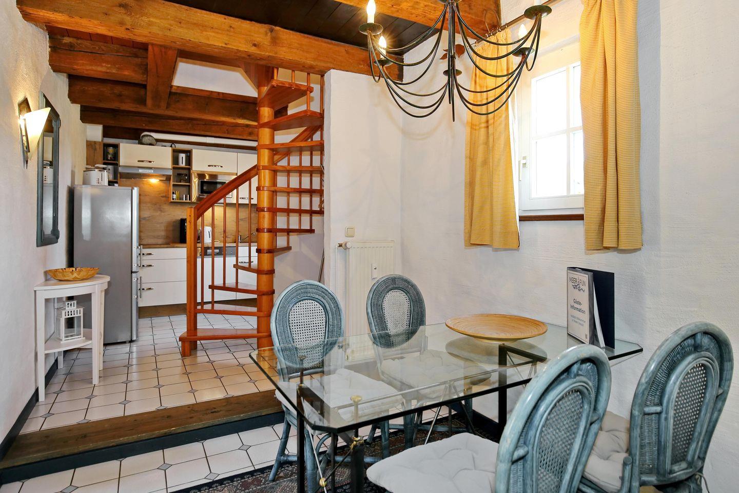 Die 3-Zimmer-Ferienwohnung 16 „Auf den Höfen“ mit 55 m² für bis zu 4 Personen verfügt über eine Terrasse und verläuft über 2 Etagen. Die Fenster sind mit Insektenschutzgittern ausgestattet. Haustiere sind nicht erlaubt.