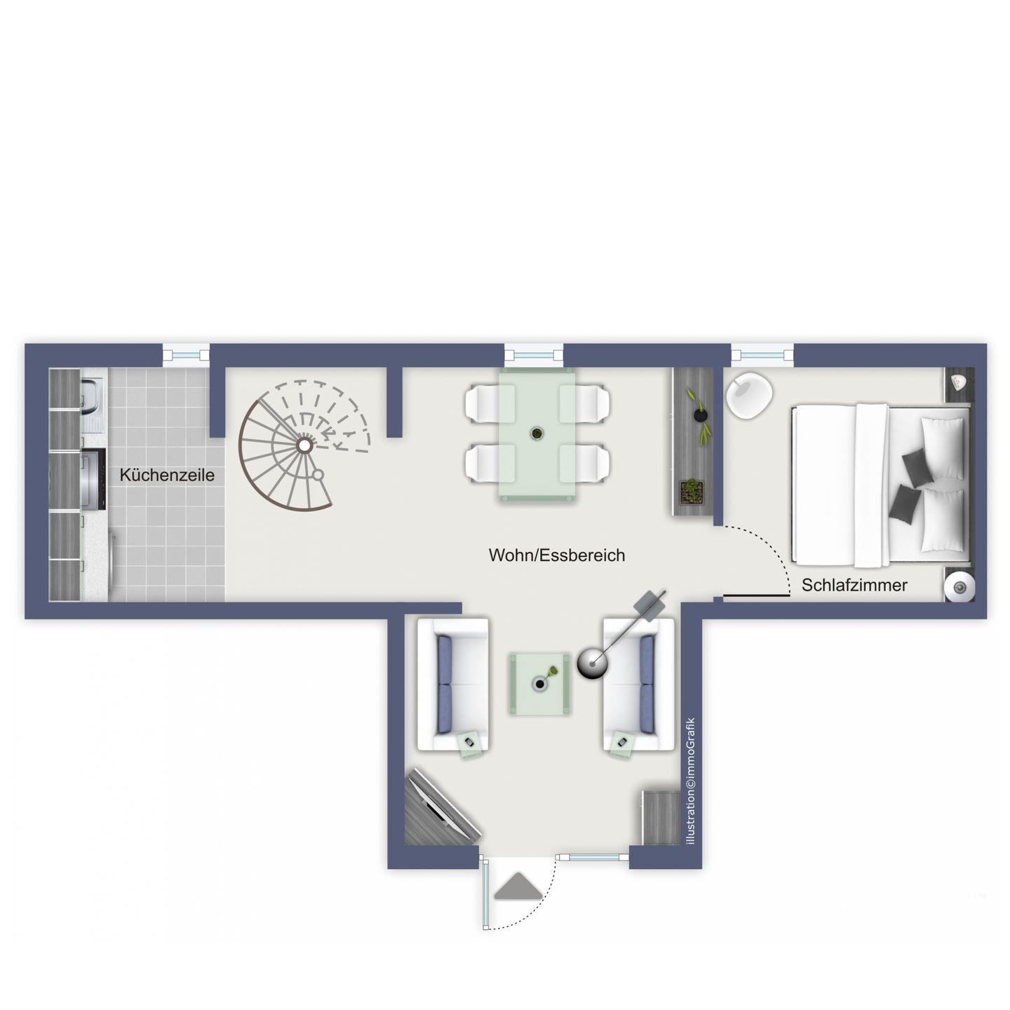 In der 3-Zimmer-Ferienwohnung 16 „Auf den Höfen“ mit einer Größe von 55 m² kannst du mit bis zu 4 Personen erholsame Tage in Kühlungsborn verbringen. Die Wohnung verläuft über 2 Etagen. Im Erdgeschoss befinden sich der Wohn- und Essbereich, ein Schlafzimmer sowie die Küche. Über eine Wendetreppe gelangst du ins Obergeschoss. Hier warten das zweite Schlafzimmer und ein Duschbad auf dich. Auf der nach Westen ausgerichteten Terrasse kannst du die frische Ostseeluft genießen.