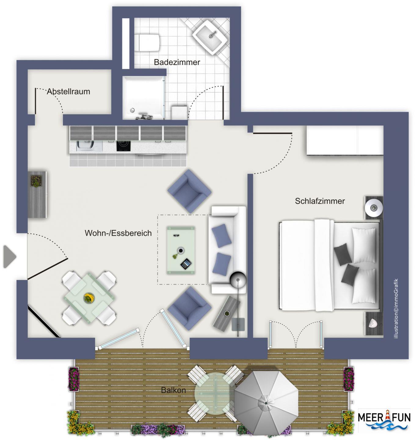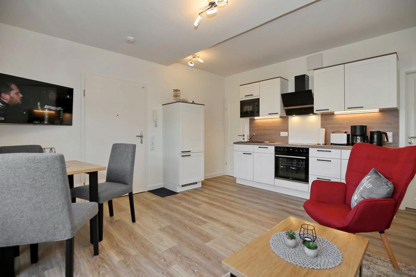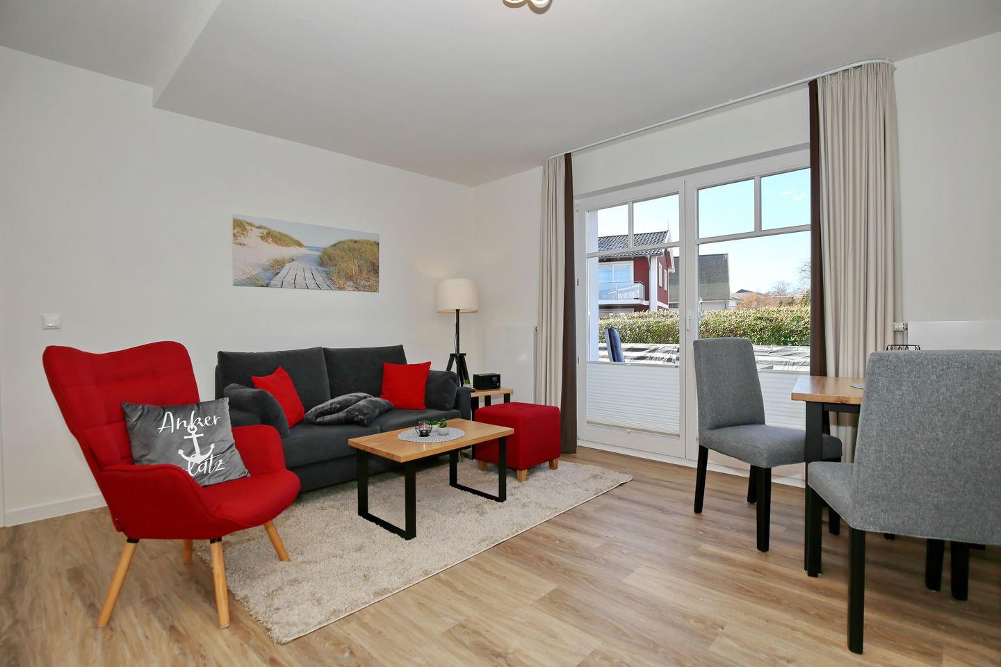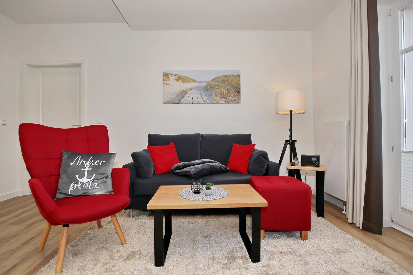 Erholung pur erwartet dich auf den etwa 44 m² Wohnfläche der Ferienwohnung. Die im Frühjahr modernisierte Wohnung liegt im Hochparterre. Auf dich warten hier ein großzügiger Wohnbereich mit Küchenzeile, ein Schlafzimmer sowie ein Duschbad. Weiterhin steht dir ein Balkon zur Westseite zur Verfügung. Zum feinen Sandstrand sind es nur ca. 50 Meter.