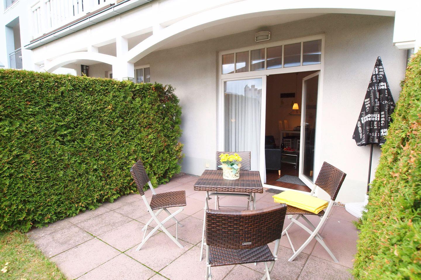 Moderne 2-Zimmer-Ferienwohnung mit Terrasse und Meeresblick in Kühlungsborn.