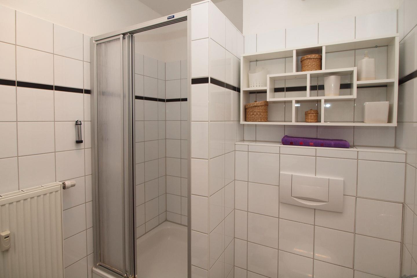 Die Ferienwohnung verfügt über ein Duschbad mit WC. Der große Waschtisch sowie ein Wandregal bieten dir viel Platz für deine Waschutensilien. Ein Föhn komplettiert die Ausstattung des Bades. Das Bad ist gefliest. Die Wohnung ist mit Design-Belag ausgestattet. In dieser Nichtraucherwohnung sind Haustiere nicht erlaubt.
