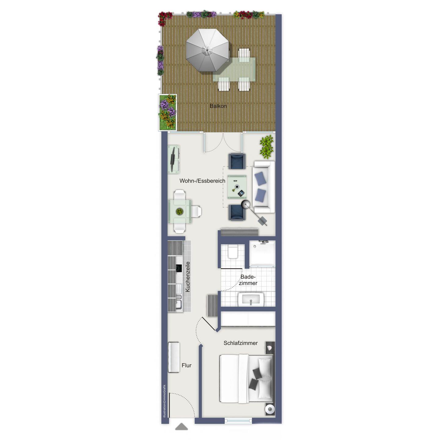 Die gemütliche Ferienwohnung im Ostseebad Kühlungsborn befindet sich im 2. Obergeschoss und verfügt über einen großen möblierten Balkon mit Teilseeblick. Mit einer Größe von 45 m² bietet dir die Wohnung mit einem Wohnbereich, einem Essbereich, einem Schlafzimmer, einer Küchenzeile und einem Badezimmer viel Platz für einen erholsamen Ostseeurlaub. Die Entfernung zum Strand beträgt etwa 50 Meter.