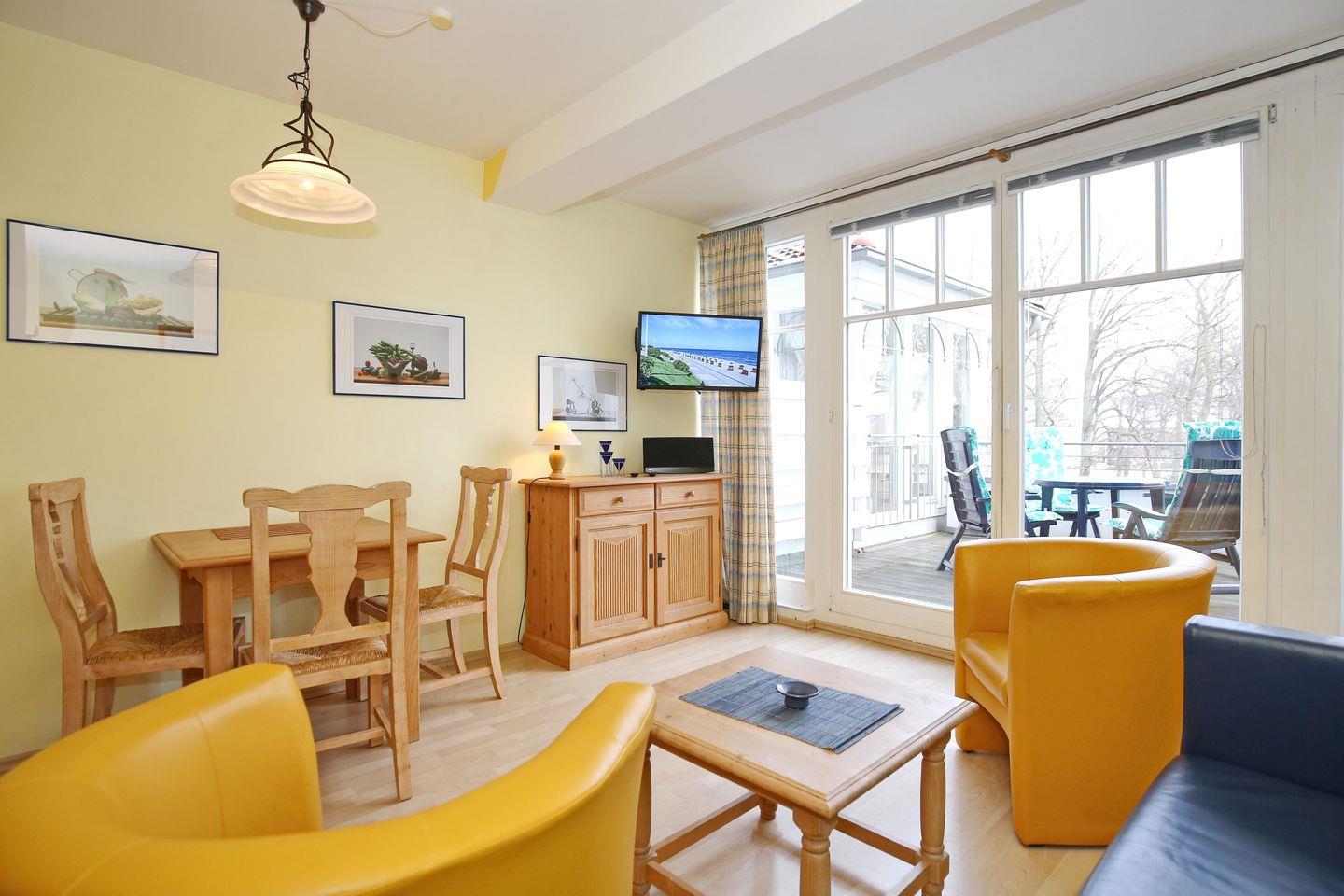 Gemütliche 2-Zimmer-Ferienwohnung mit Balkon und Teilblick auf die Ostsee, nur 50 Meter vom Strand in Kühlungsborn entfernt.