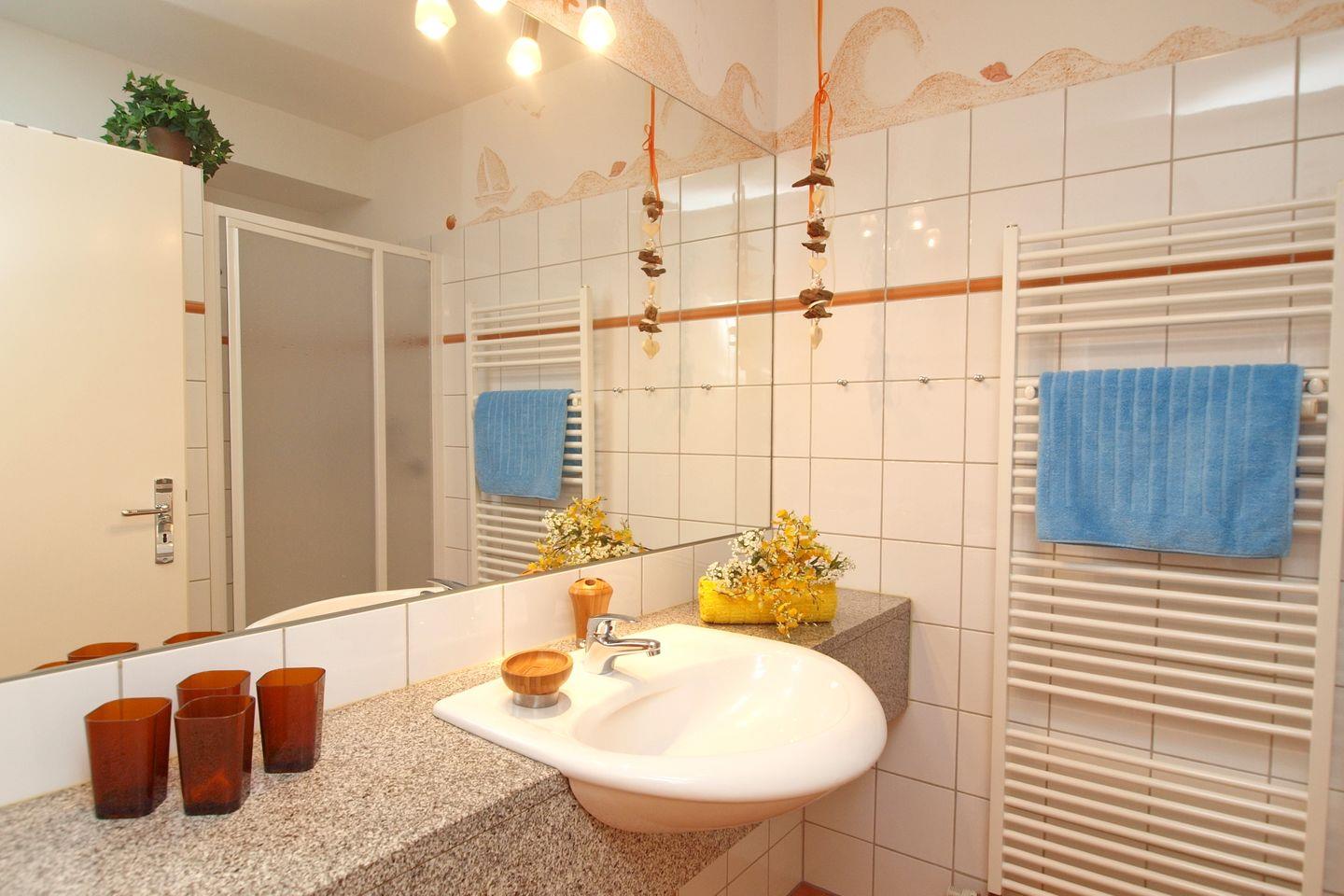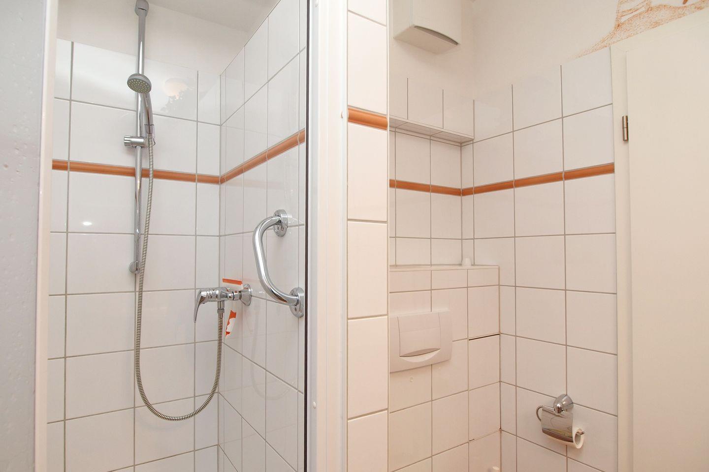 Weiterhin ist ein gefliestes Duschbad/WC mit Föhn vorhanden. In allen anderen Räumen wurde Laminat verlegt.