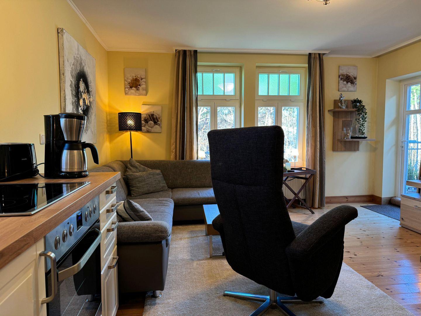 Die Ferienwohnung 07 in der Villa Glückauf in Kühlungsborn ist eine 40 m² große 2-Raum-Wohnung für bis zu 3 Personen. Genießen Sie vom Balkon aus den Blick zum Stadtwald.