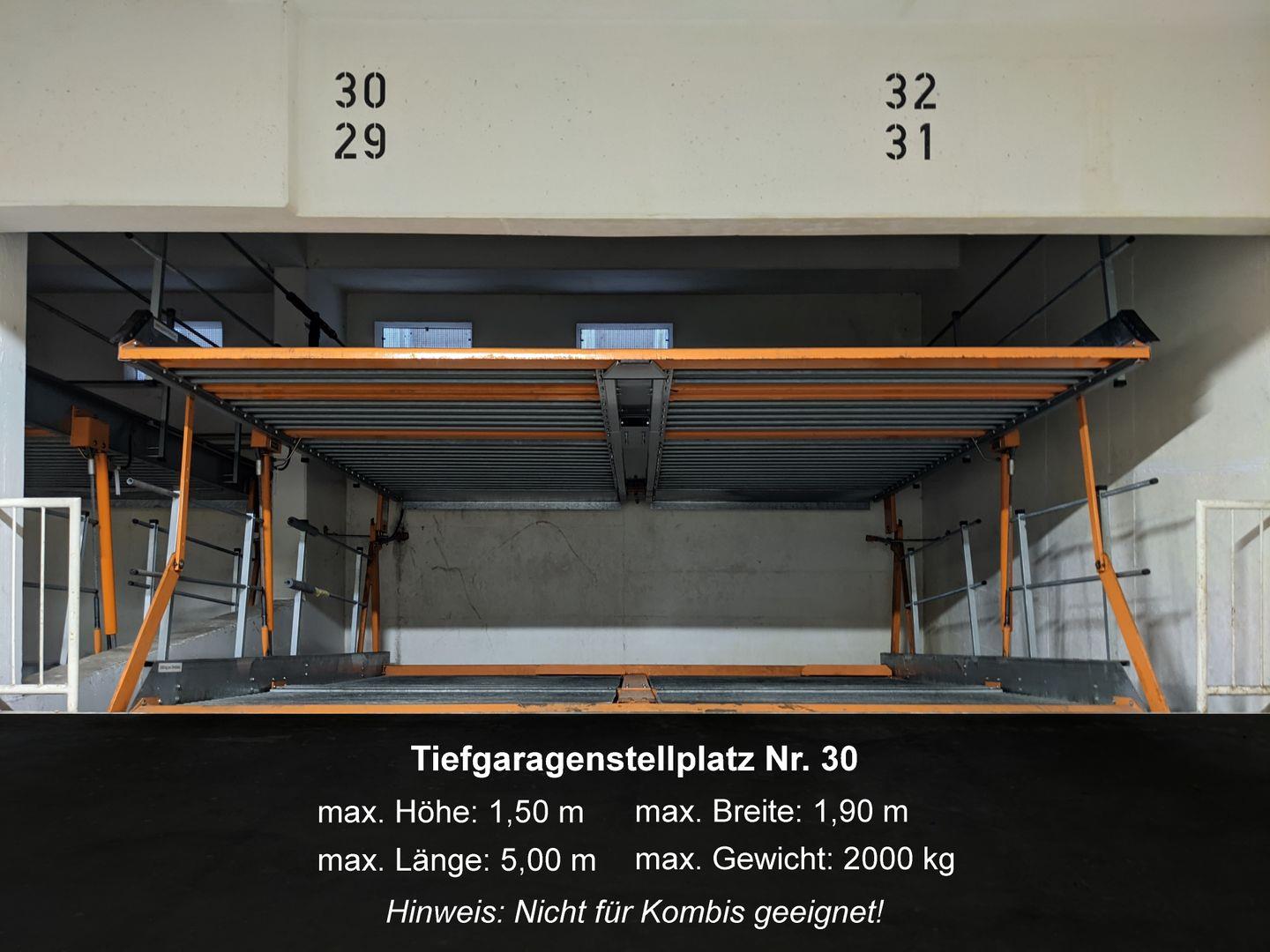 Deinen PKW kannst du in der Tiefgarage auf dem Stellplatz Nr. 30 parken (max. Höhe 1,50 m; für Kombis nicht geeignet!). Fahrräder können in einem Fahrradkeller in der Tiefgarage abgestellt werden.