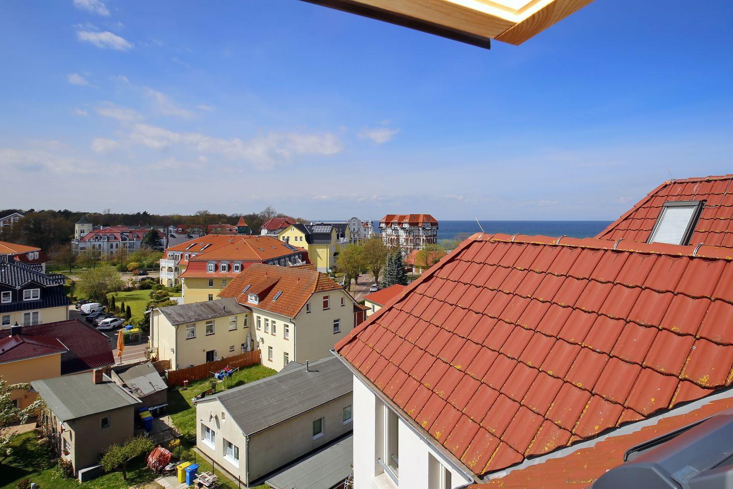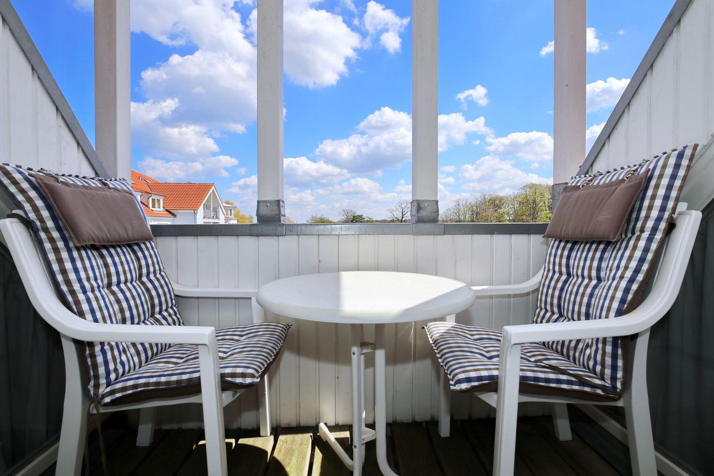 Gemütliche 2-Zimmer-Ferienwohnung mit seitlichem Meerblick und Loggia nur 50 Meter vom Ostseestrand in Kühlungsborn.