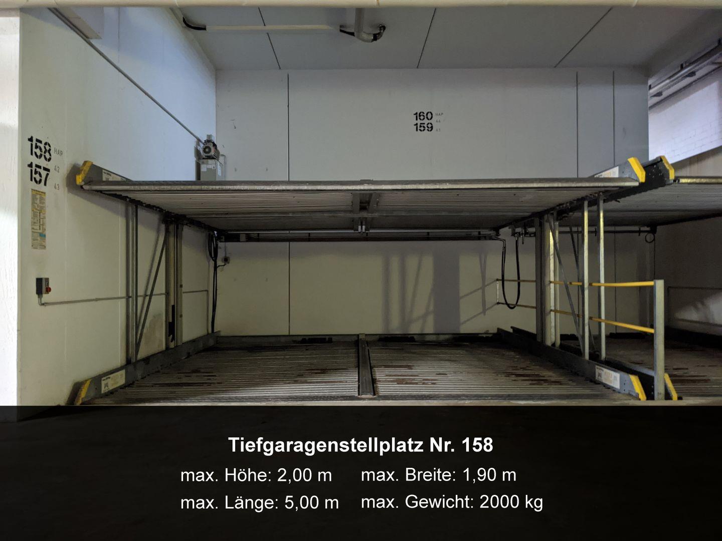 Der dazugehörige Tiefgaragenstellplatz Nr. 158 befindet sich im Nachbarhaus "Meeresblick" (max. Höhe von 2,00 m, max. Gewicht 2.000 kg).