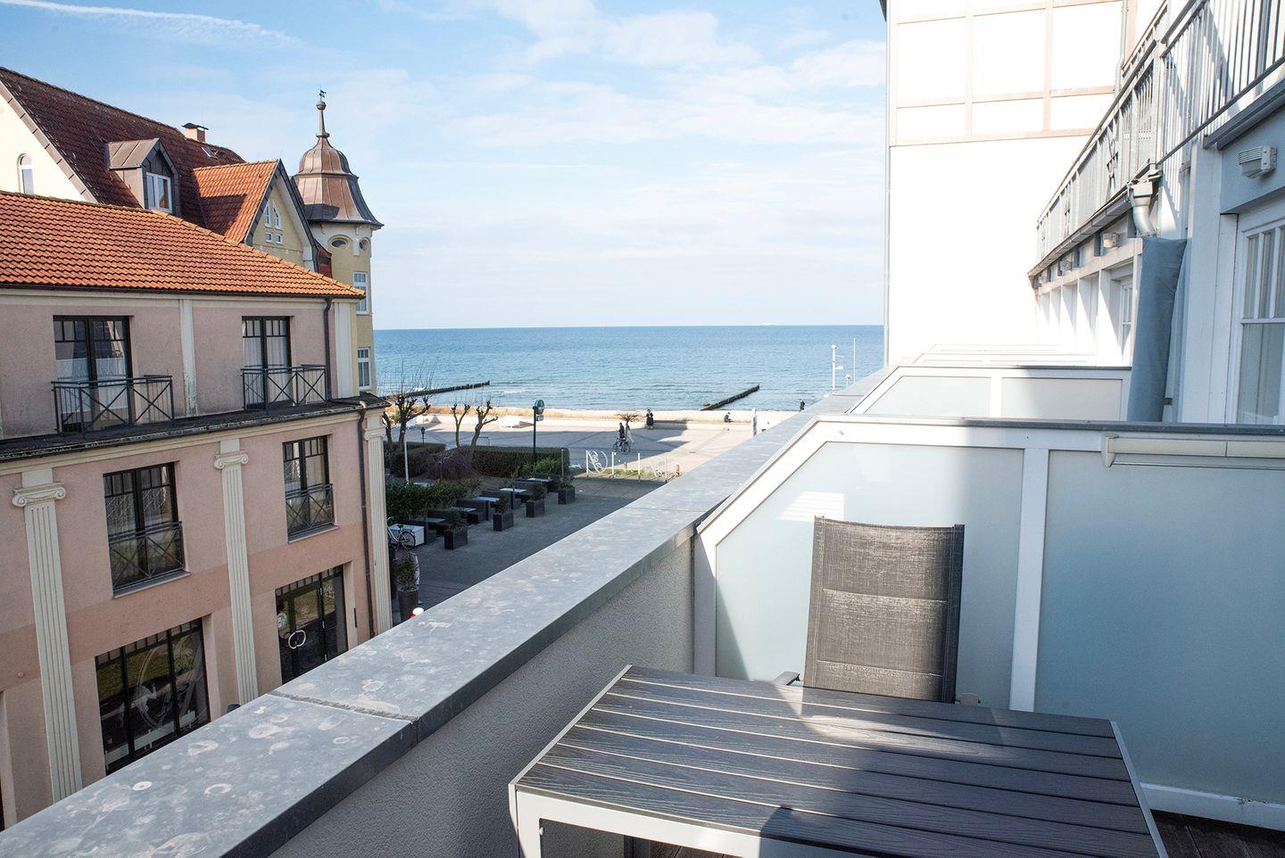 Moderne 2-Zimmer-Ferienwohnung mit Teilmeerblick und Balkon, nur 50 m vom Strand in Kühlungsborn entfernt.