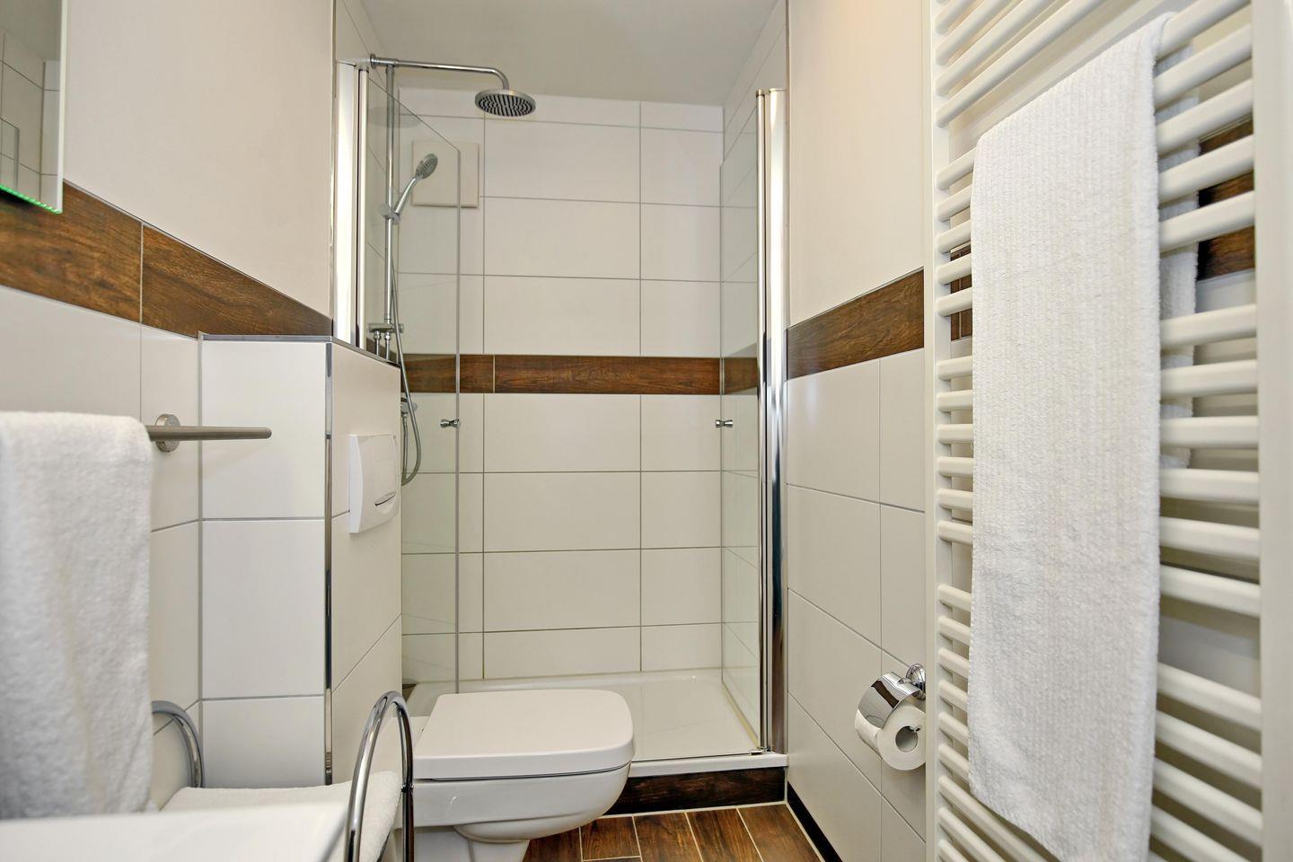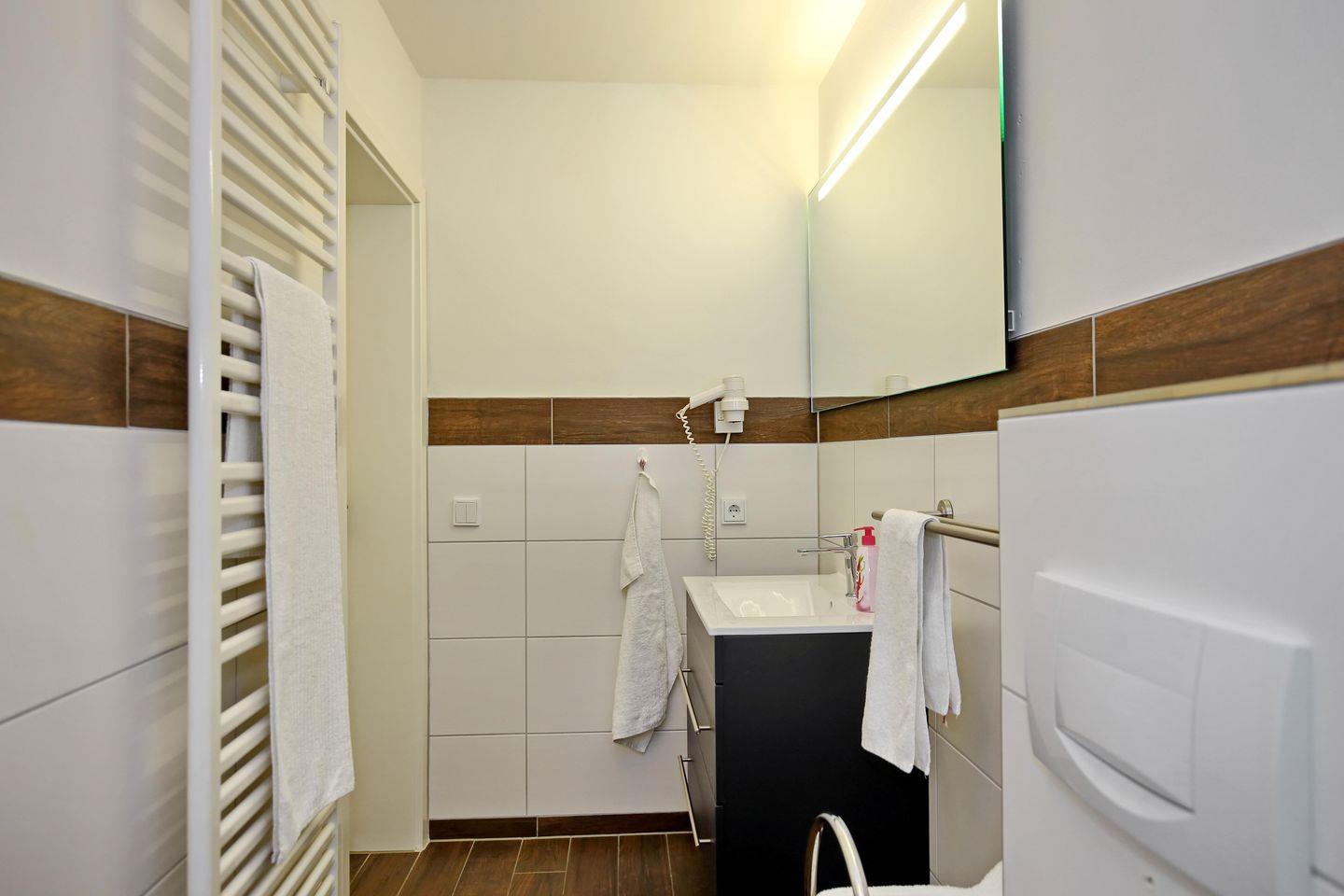 Die Ferienwohnung verfügt über ein gefliestes, sehr modernes Duschbad mit WC und ein Gäste-WC. Für deine Waschutensilien findest du genügend Ablagefläche. In der gesamten Wohnung wurde ein Vinyl-Boden verlegt. In dieser Nichtraucherwohnung sind Haustiere nicht erlaubt.