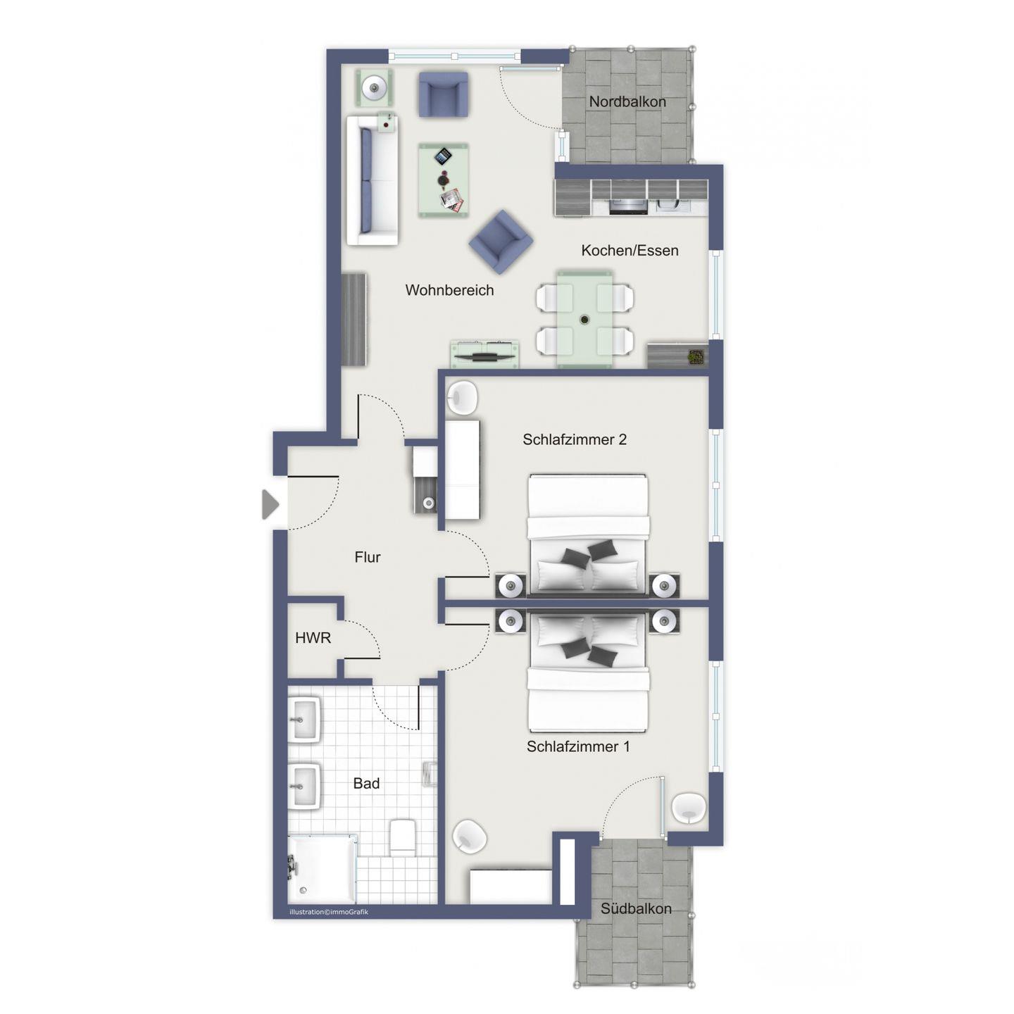 Wohnfläche 57 m²