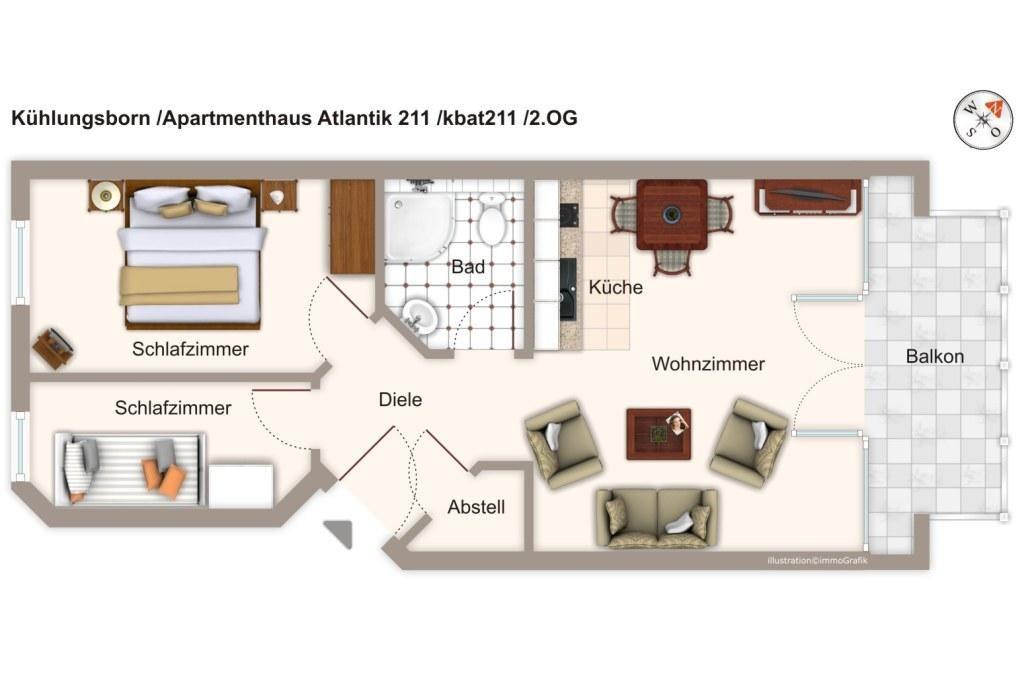 Die Ferienwohnung liegt im 2. Obergeschoss auf der Nordseite der Anlage - am Strand und in Nähe zum Yachthafen in Kühlungsborn.