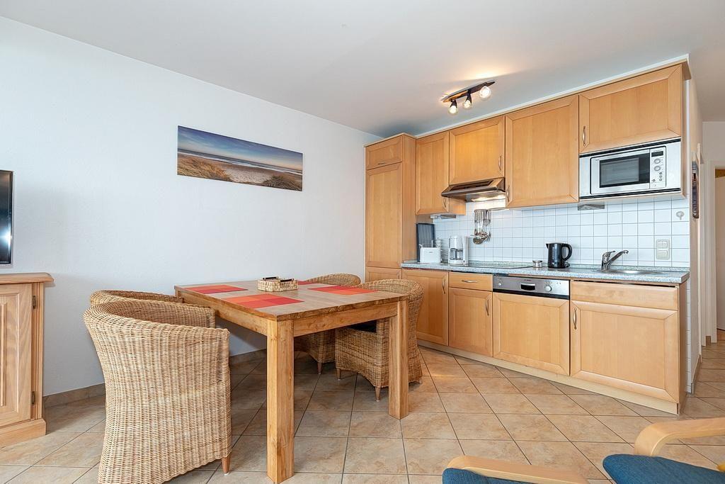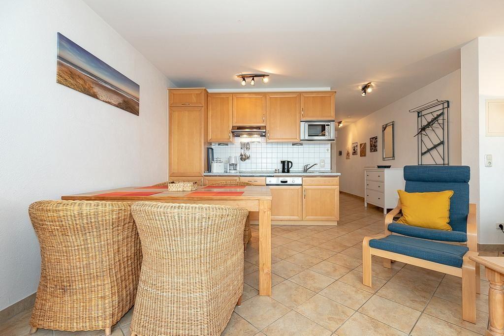 Das gemütliche Nichtraucher-Apartment verfügt über kostenfreies WLAN und eine voll ausgestattete offene Küche mit Geschirrspüler, Mikrowelle, 4-Platten-Induktionsherd, Wasserkocher, Kaffeemaschine und Toaster. Der kombinierte Wohn- und Essbereich verfügt über eine TV-HiFi-Anlage mit Flachbild-TV, DVD-Player und eine Doppelschlafcouch. Sowohl der Esstisch, als auch der behagliche Sitzbereich bieten genügend Platz, um schöne Stunden beim Frühstück oder nach einem ereignisreichen Tag am Strand zu verbringen. Überdies verfügt das Duschbad über einen Föhn und Kosmetikspiegel. Das separate Schlafzimmer ist ausgestattet mit einem großen Doppelbett (2 x 0,90 x 2,00). Das Schlafzimmerfenster liegt zum Atrium, dem begrünten, überdachten Innenhof des Gebäudes. Vom Balkon habt ihr einen direkten Blick auf die Ostsee. Der Balkon ist vom Wohn-/ Essbereich zugänglich.