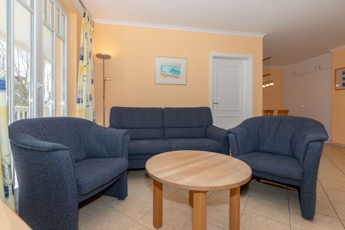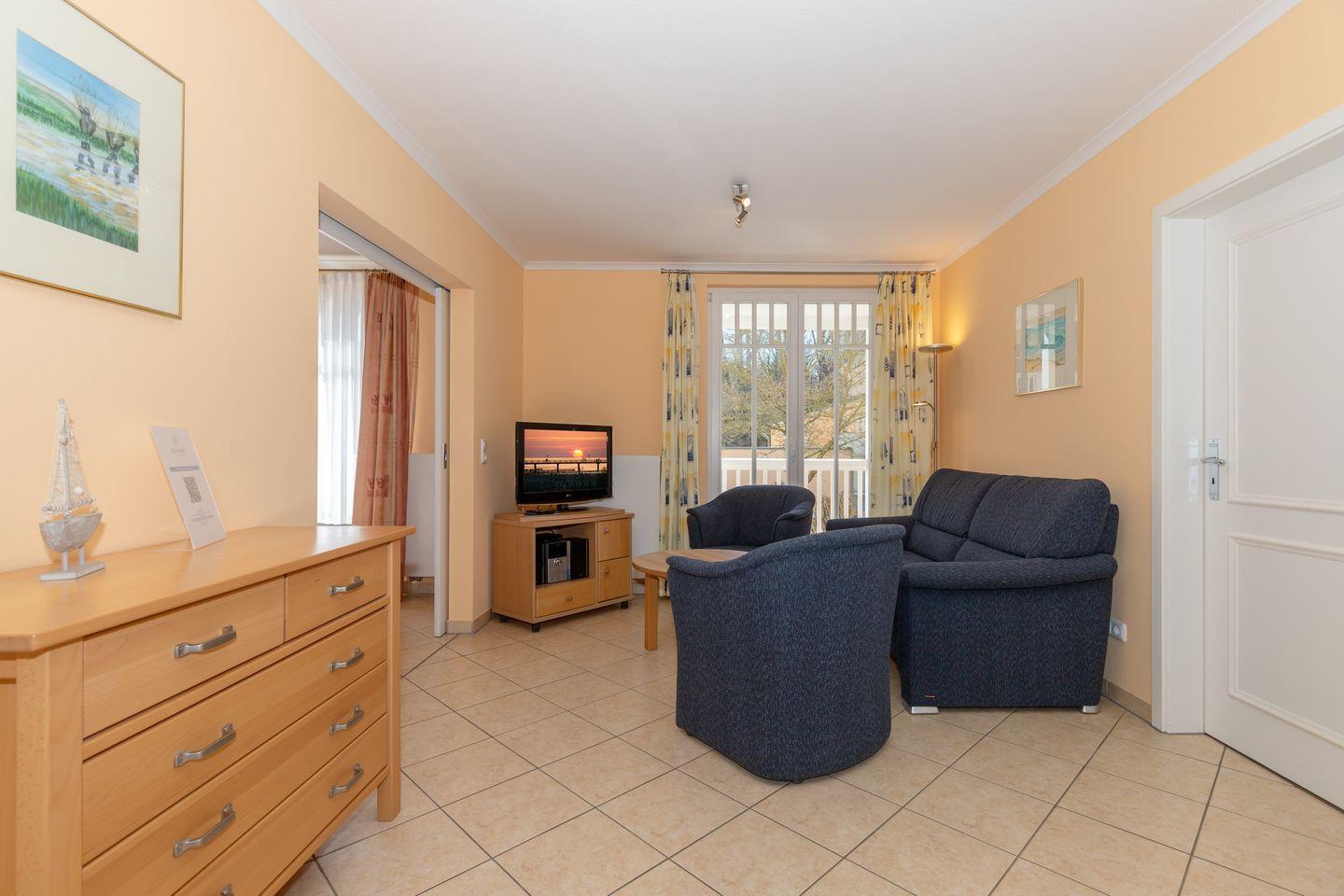 Die Ferienwohnung liegt im 1. Obergeschoss der Apartmentanlage, im Haus 2 nach Süden gelegen.