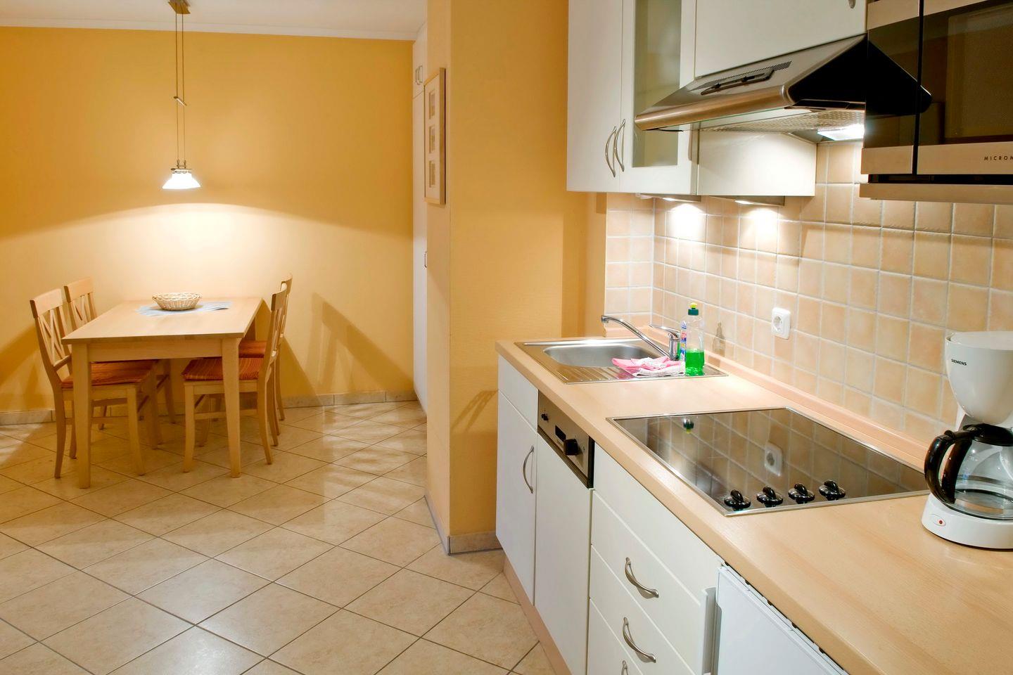 Eine voll ausgestattete offene Küche mit Wasserkocher, Kaffeemaschine, Toaster, Mikrowelle mit Grillfunktion und Geschirrspüler, ein Flachbildfernseher, ein DVD-Player und eine TV-HiFi-Anlage ergeben die Komfort-Ausstattung des Apartments. Der WLAN-Anschluss steht euch kostenfrei zur Verfügung.