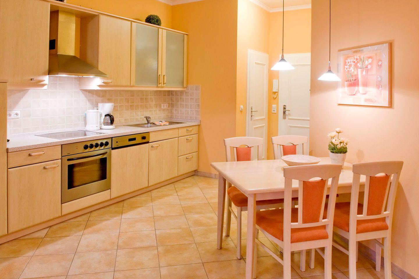 Zudem sind in der Ferienwohnung eine voll ausgestattete offene Küche mit Wasserkocher, Kaffeemaschine, Toaster, Backofen, Geschirrspüler und Mikrowelle sowie ein Föhn, Bügeleisen mit Bügelbrett und eine TV-HiFi-Anlage mit DVD-Player vorhanden. Der WLAN Anschluss steht euch kostenfrei zur Verfügung.
