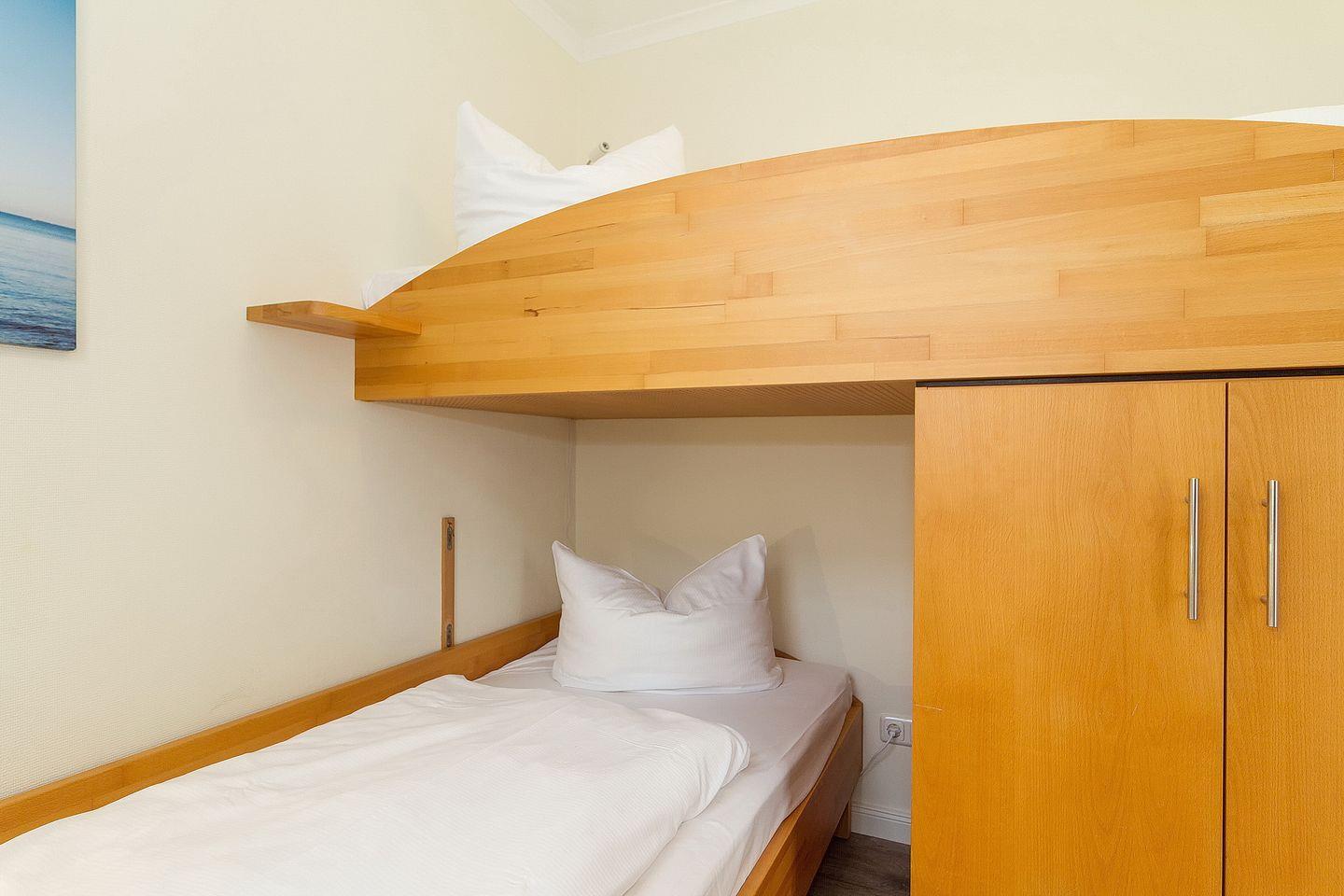 Das Nichtraucher-Apartment verfügt über zwei Schlafbereiche. Neben einem Doppelbett steht euch ein Einzelbett und ein Hochbett zur Verfügung. Für das Einzelbett ist ein Gitteraufsatz vorhanden, so dass das Bett zum sicheren Kinderbett umfunktioniert werden kann. Zudem verfügt die Unterkunft über ein gemütliches Wohnzimmer, ein Bad mit ebenerdiger Dusche und eine erhöhte Toilette mit zwei Haltegriffen. Das Waschbecken ist mit einem Rollstuhl unterfahrbar und die barrierearme Terrasse in Südlage bietet euch einen Ausblick ins Grüne. Eine voll ausgestattete offene Küche mit Wasserkocher, Kaffeemaschine, Toaster, Backofen und Geschirrspüler lädt zum gemeinsamen Koche ein. Ein Föhn, Bügeleisen mit Bügelbrett, zwei TV Geräte und eine HiFi-Anlage mit DVD-Player ergänzen die Ausstattung des Apartments. Das WLAN steht euch kostenfrei zur Verfügung.