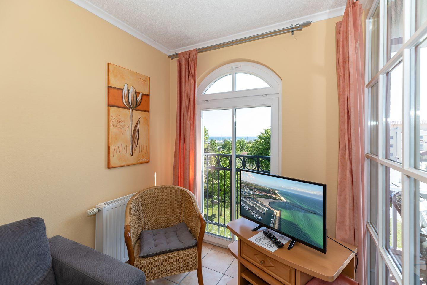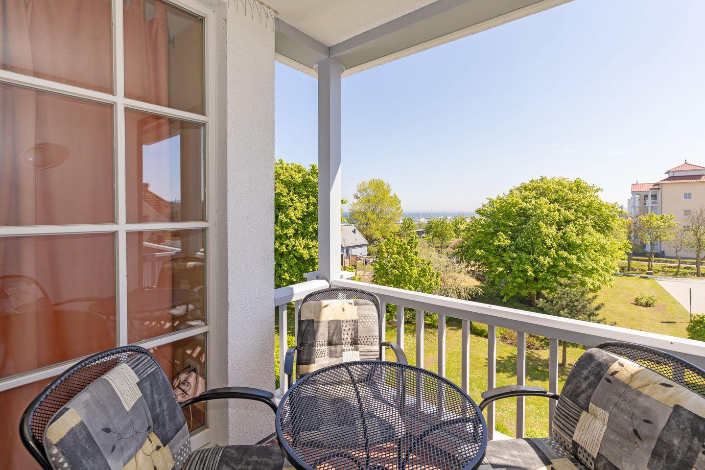 Moderne Ferienwohnung am Strand von Kühlungsborn mit Balkon und Blick auf den Yachthafen.