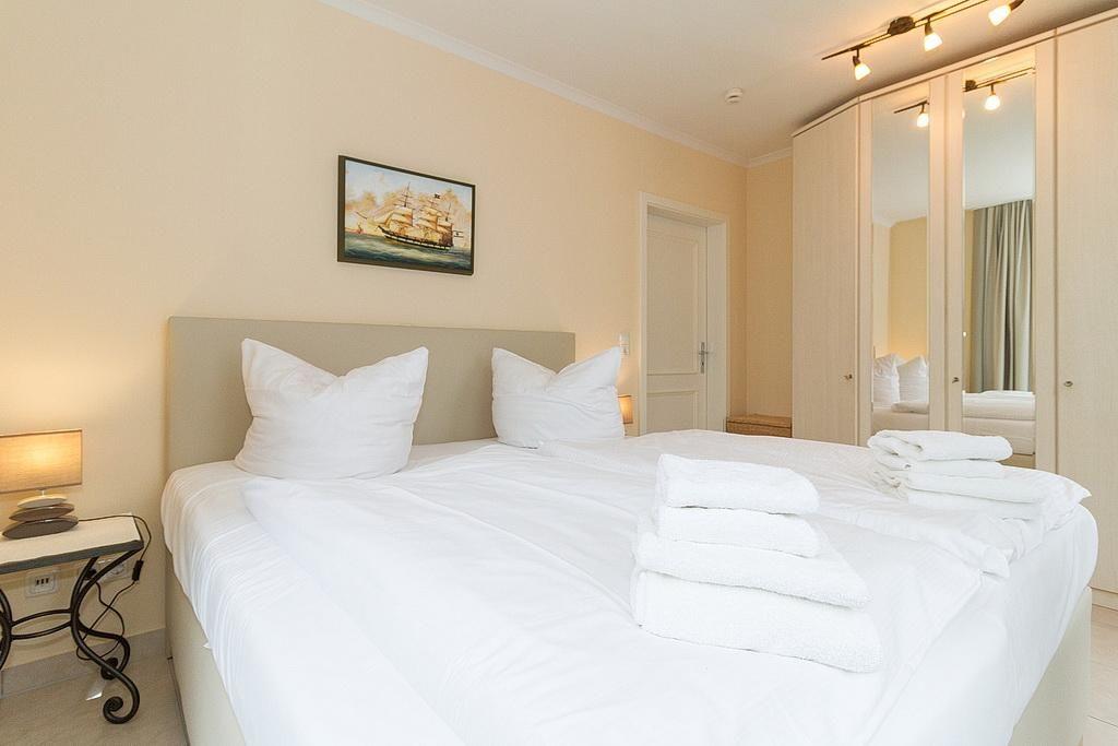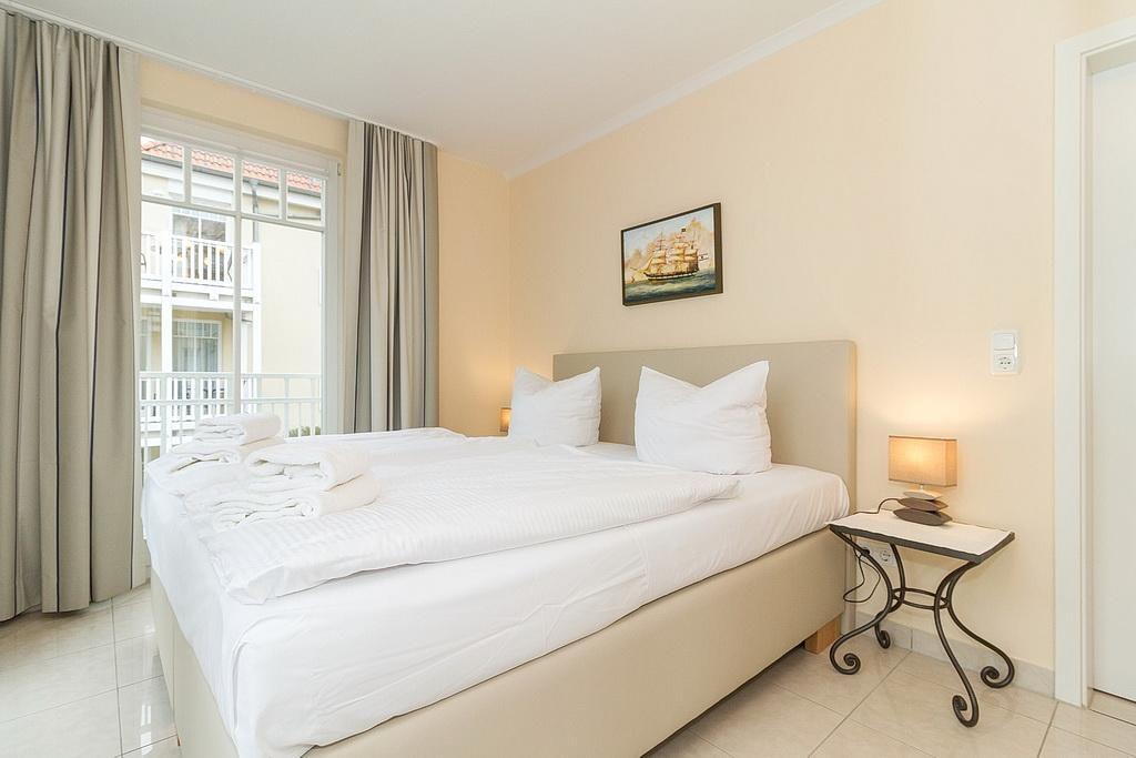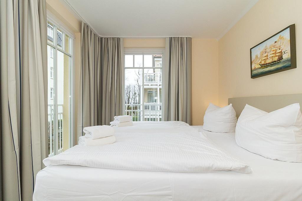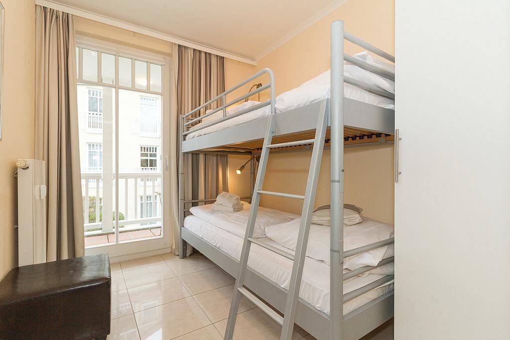 Das allergikerfreundlich eingerichtete Nichtraucher-Apartment mit eingeschränktem Meerblick beinhaltet zwei Schlafzimmer, ausgestattet mit einem Boxspring- bzw. einem Etagenbett. Das Kinderzimmer hat einen eigenen Balkon mit Blick zur Ostsee. Im Wohnbereich befinden sich eine TV-HiFi-Anlage mit Flachbildschirm, DVD-Player, Radio und CD-Player. Bücher und Spiele stehen euch ebenfalls zur Verfügung.